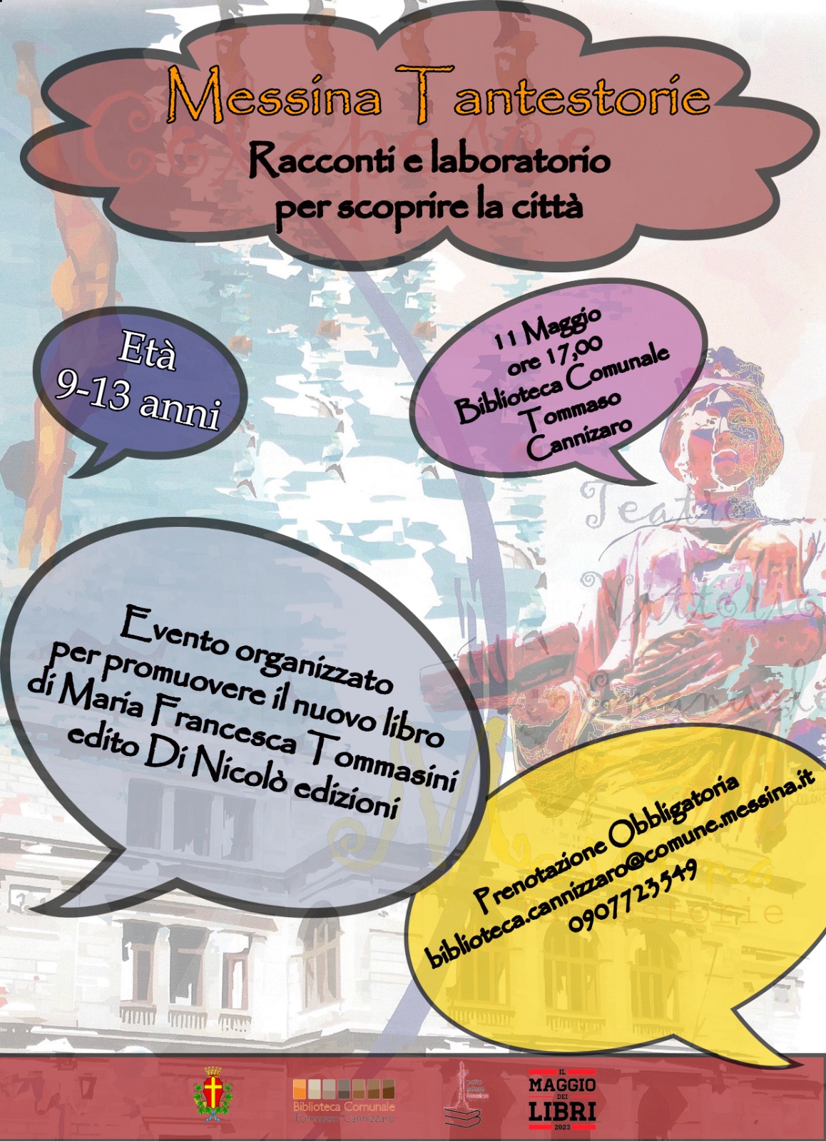 Presentazione del libro di M.F. Tommasini "Messinatantestorie itinerari per piccoli viaggiatori" con successivo laboratorio. Evento rivolto ai bambini dai 9 ai 13 anni,