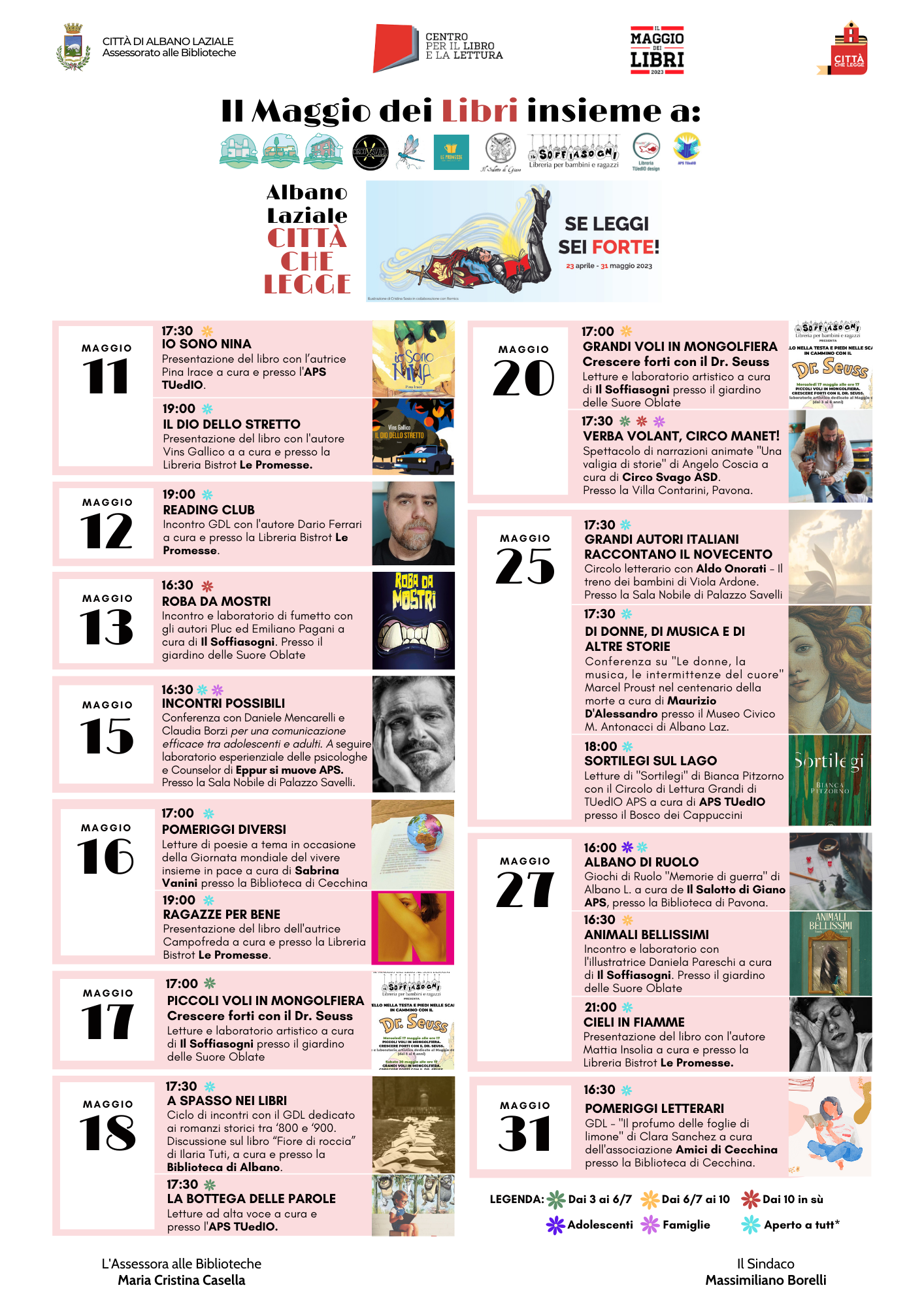 A tal proposito è stato realizzato un cartellone unico con tutte le iniziativa svolte dal 11 al 31 maggio 2023.