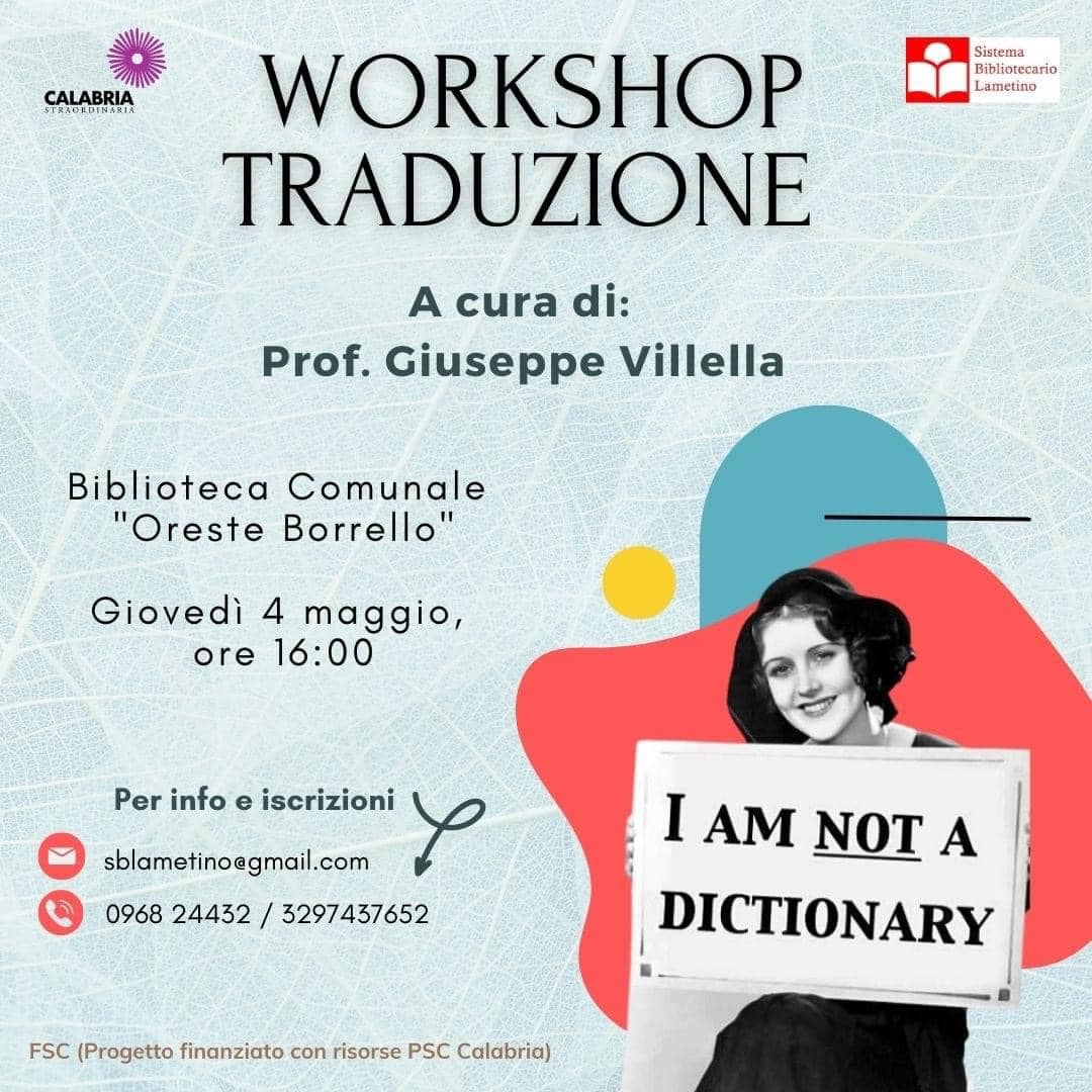 Workshop improntato sulla differenze circa la traduzione italiano-inglese portando differenti esempi (letterari, poetici, etc).