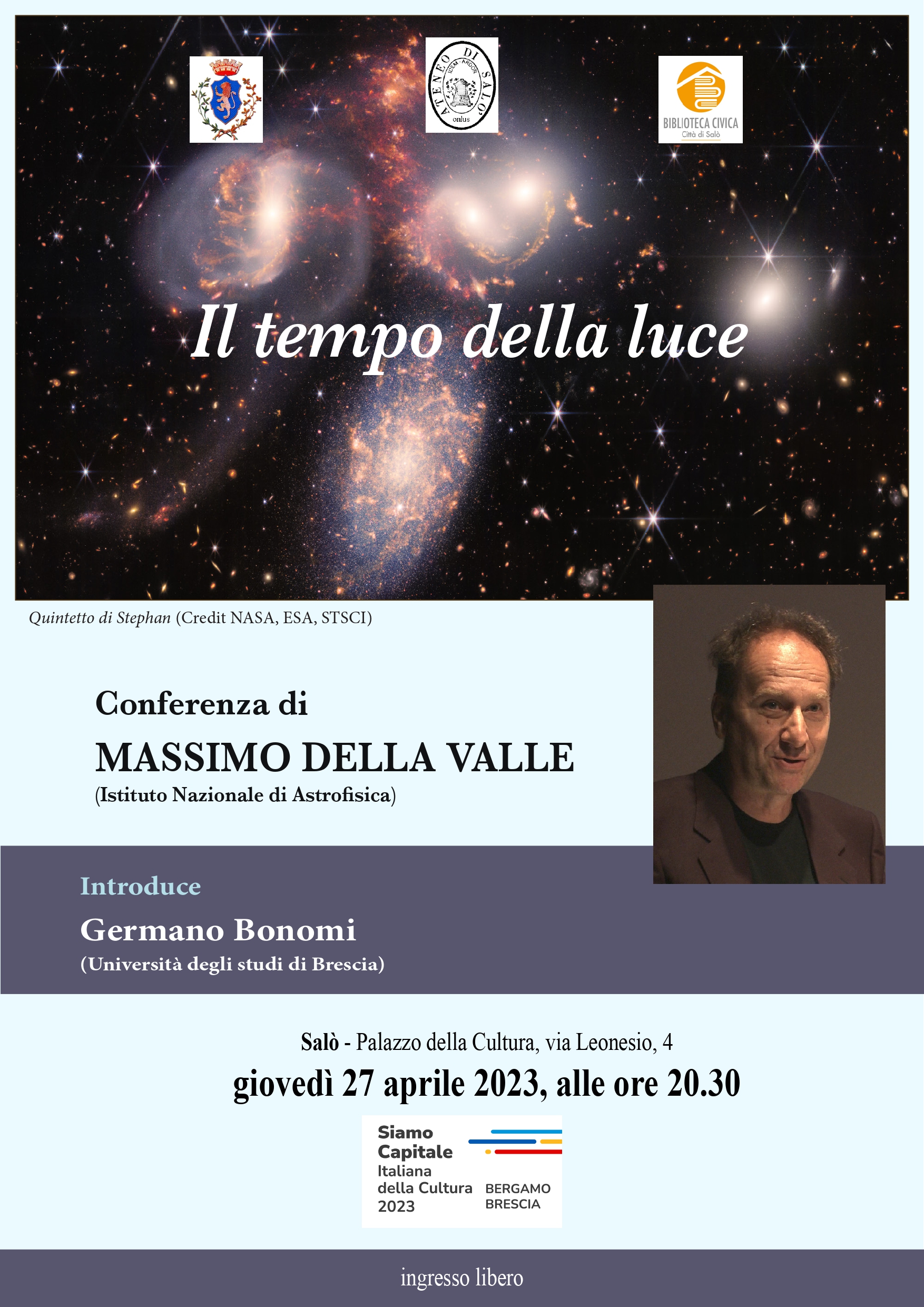 Presentazione volume di Massimo Della Valle (Istituto Nazionale di Astrofica) "Il tempo della luce, Morellini editore, 2022. Introduce Germano Bonomi (Università degli studi di Brescia).