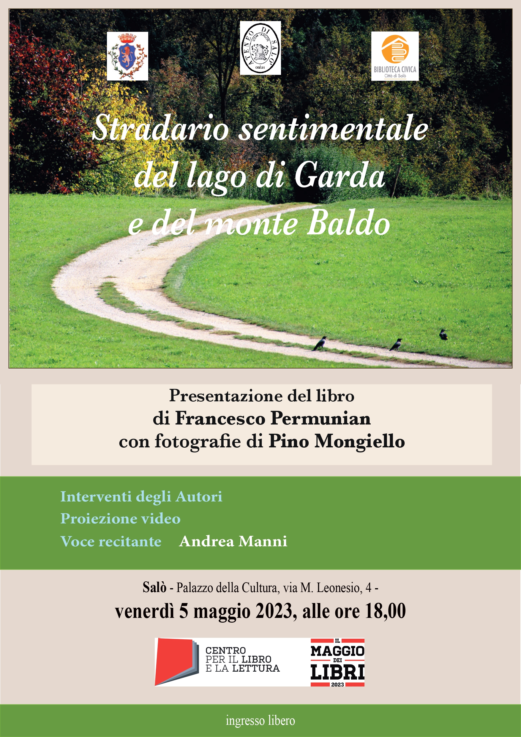 Presentazione volume di Francesco Permunian "Stradario sentimentale del lago di Garda e del monte Baldo", con fotografie di Pino Mongiello, Oligo, 2023. Interventi degli autori, proiezione video. Voce recitante: Andrea Manni.