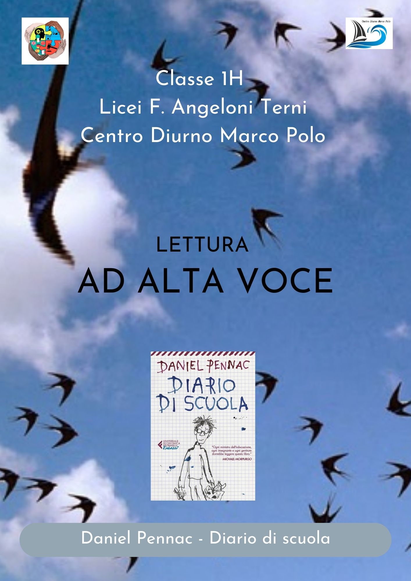 La classe 1H della sezione Scienze Umane-Economico Sociale dei Licei Statali F. Angeloni e il Centro Diurno Marco Polo (Coop. Sociale Helios Onlus - Csm Usl Umbria2) di Terni, hanno effettuato un' esperienza insieme di Lettura ad alta voce del libro "Diario di scuola" di Daniel Pennac. Il libro era stato precedentemente letto da entrambi separatamente nel proprio ambiente, a scuola e al Centro Diurno. Dopo un momento conviviale, ognuno ha scelto delle parti significative del testo (4 a testa) che sono state lette insieme, alternando i lettori, durante la mattina del 4 maggio presso i locali del Centro Marco Polo in cui la classe si è recata accompagnata dai docenti Sara Raspa ed Andrea Gresta (che è anche il coordinatore del Centro). Le persone si sono disposte sedute in un ampio cerchio, data la capienza della sala. Al termine della lettura sono seguite riflessioni e considerazioni collettive che hanno poi prodotto delle parole chiave, che ognuno ha scelto e verbalizzato a turno al gruppo, riportandole poi su un piccolo foglio. I fogli sono stati disposti a terra secondo le assonanze che si venivano a creare tra le parole: ogni persona, senza ordine prestabilito, si alzava e aggiungeva il suo foglio vicino alla parola che sentiva più vicina alla propria. Si è creato così un componimento collettivo che è stato riletto alla fine dell'esperienza e che i ragazzi della classe 1H hanno portato a scuola per rielaborare su un grande cartellone, aggiungendo anche dei connettivi dove necessario. Il cartellone rimane a scuola fino alla fine delle lezioni a giugno e successivamente sarà donato al Centro Diurno dove verrà appeso su una parete.