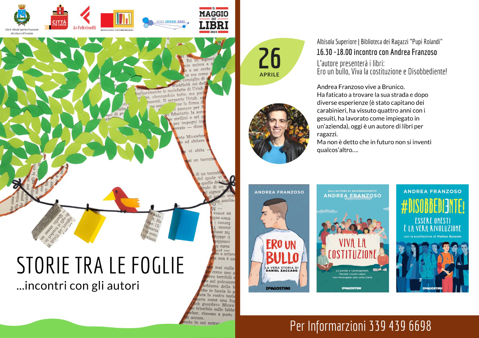 Il giorno 26 aprile in orario pomeridiano è previsto un incontro aperto alla cittadinanza con l'autore per la presentazione dei suoi tre libri "Ero un bullo". "Viva la Costituzione", "Disubbidiente!"