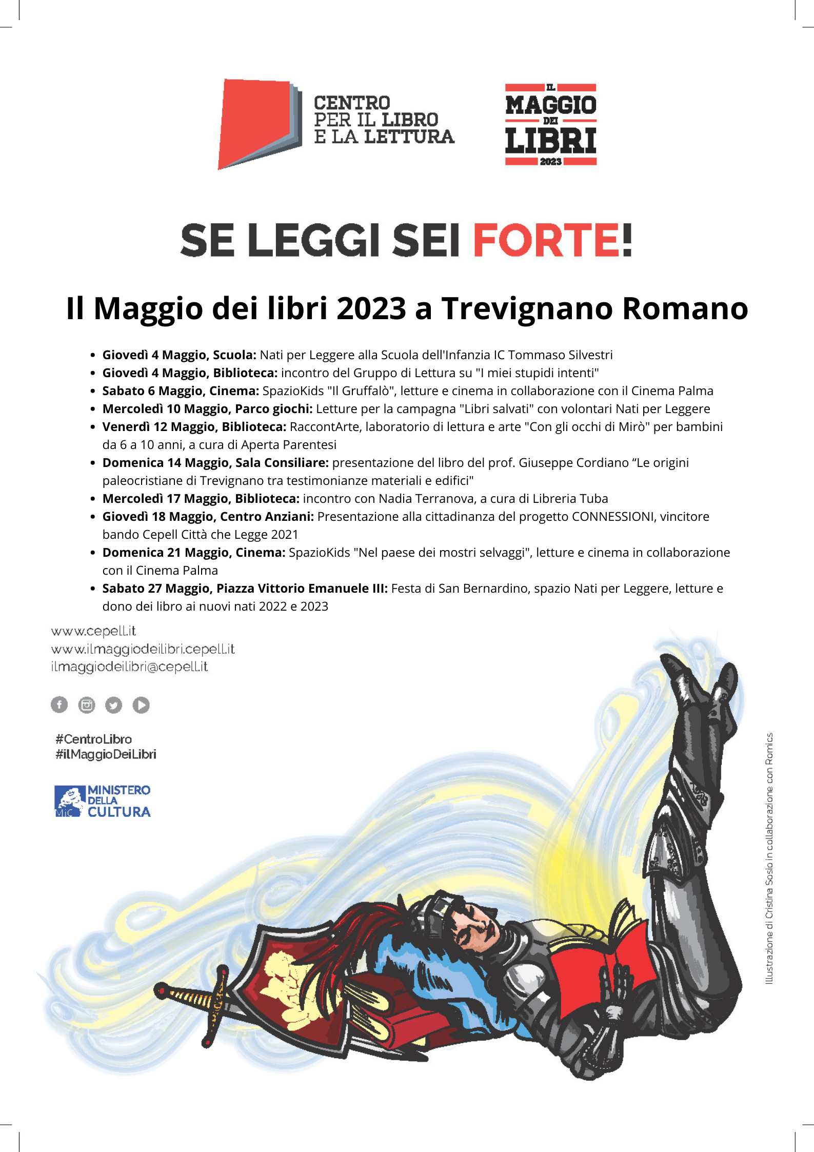 Nel mese di maggio la lettura invade i luoghi di Trevignano Romano e va incontro alla Comunità!!! Letture, incontri con autori, presentazioni, laboratori per i più piccoli, tante occasioni di incontro tra storie e persone.