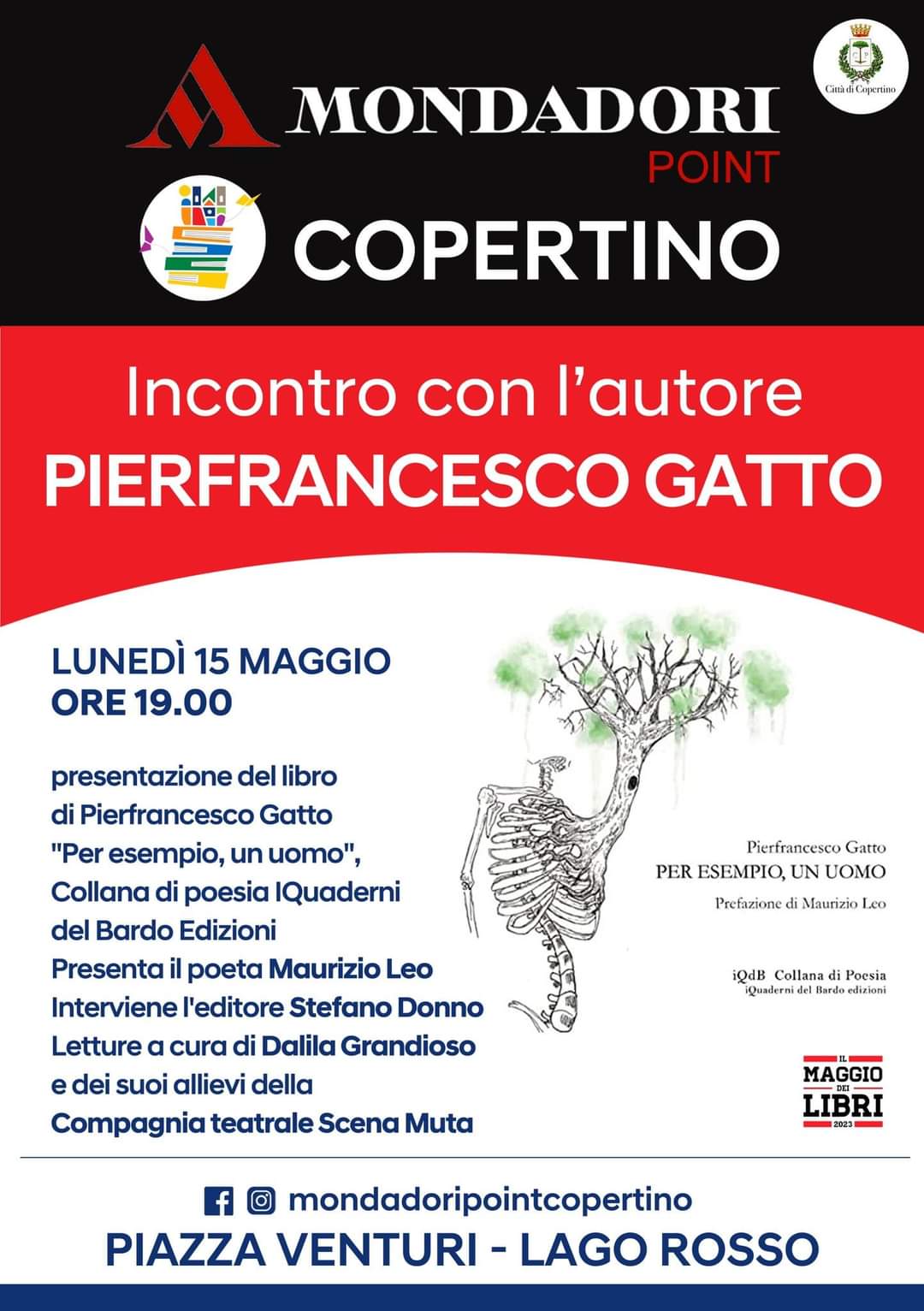 Temi ricorrenti delle poesie scritte da Pierfrancesco Gatto, il cui libro è stato presentato nella biblioteca Mondadori Point di Copertino, rappresentano la descrizione di paesaggi e luoghi del nostro Sud, come il mare e la stessa Copertino, paese in cui vive lo scrittore. Si nota, inoltre, una ricorrente inquietudine che salta fra la decadente materialità corporea e la ricerca di un benessere esistenziale che sia oltre... Oltre cosa? Forse è proprio questa la ricerca costante che Pierfrancesco racconta con la sua poesia: credo che voglia ricercare solo la leggerezza, quella essenziale dell'essere, che vada oltre il peso del corpo, oltre il pensiero della vita, oltre l'imbarazzante, giornaliero sfiorare della morte, in ogni sua forma; oltre l'annichilimento delle tradizioni, oltre il volere, oltre Dio.