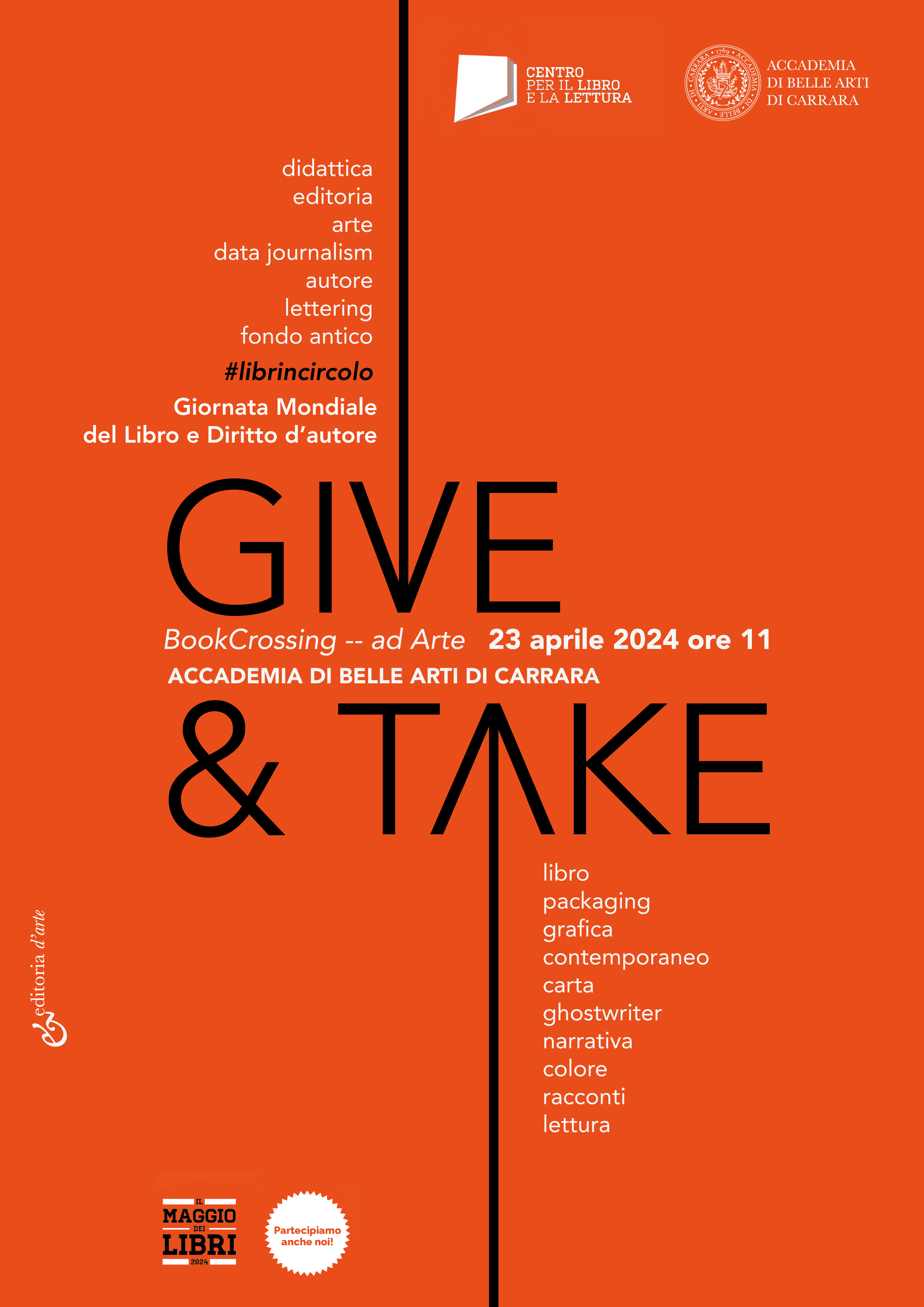 Il 23 Aprile alle ore 11 presso la Sala delle Colonne della Biblioteca dell'Accademia di Belle Arti di Carrara avrà luogo l'evento #libriincircolo con l'inaugurazione del