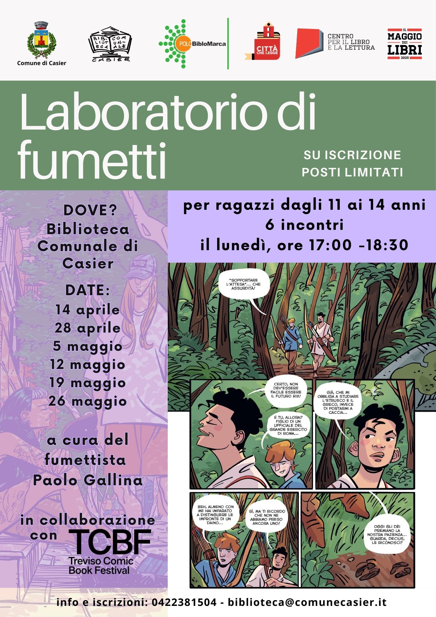 Laboratorio di fumetti in 6 incontri, per ragazzi dagli 11 ai 14 anni, a cura del fumettista Paolo Gallina, in collaborazione con Treviso Comic Book Festival. Dalle ore 17:00 alle ore 18:30. POSTI AL COMPLETO