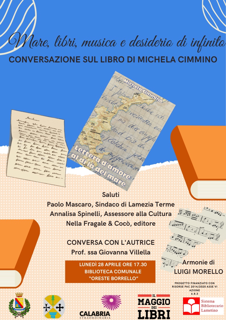Presentazione dedicata al libro "Lettera d'amore al di là del mare" di Michela Cimmino. Avremo l'opportunità di approfondire i temi che animano queste pagine con un incontro tra l'autrice e la Prof.ssa Giovanna Villella.