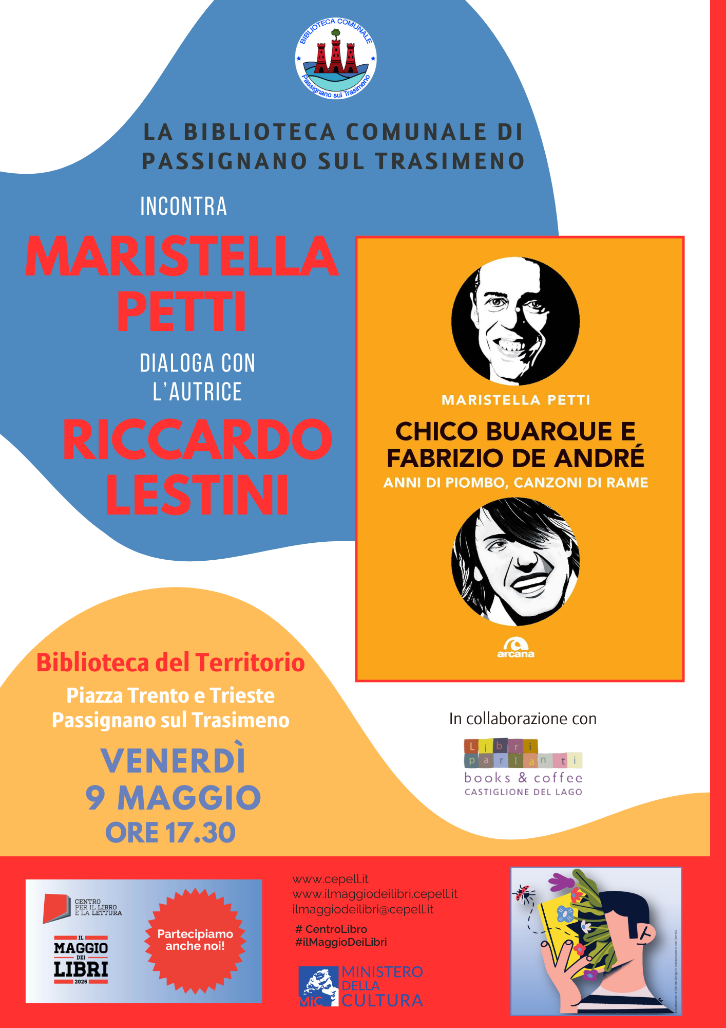 La Biblioteca comunale del Territorio di Passignano sul Trasimeno incontra Maristella Petti, autrice di "Chico Barque e Fabrizio De André. Anni di piombo, canzoni di rame" (Arcana Edizioni). Dialoga con l'autrice Riccardo Lestini.