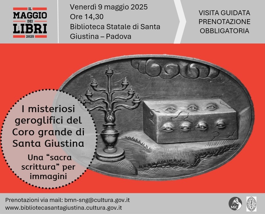 Nel coro cinquecentesco della Basilica di Santa Giustina si nascondono delle raffigurazioni simboliche che rappresentano tuttora un enigma. Gli umanisti li chiamavano "geroglifici", perché li ritenevano una scrittura sacra come quella degli Egizi, e fioriva allora il genere letterario dell'emblematica, costituito proprio da repertori di queste misteriosi immagini. Proprio dalla visione di uno di questi antichi volumi prenderà avvio la nostra visita guidata, per presentare poi nel coro una nuova ipotesi di lettura dei nostri geroglifici. Avremo finalmente sciolto l'enigma, come Edipo con la sfinge? Ai partecipanti l'ardua sentenza!