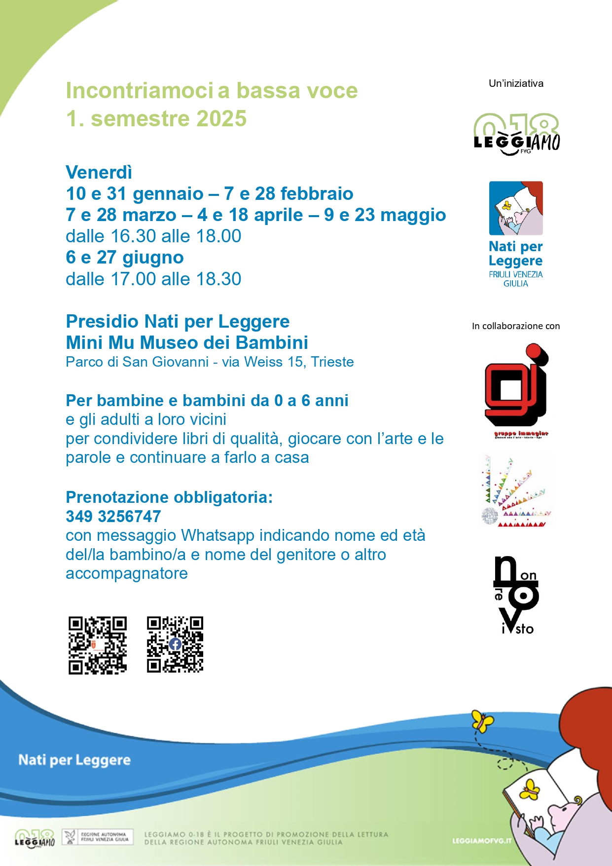 Consueti incontri nella sede del Mini Mu Museo dei Bambini, centro di coordinamento delle attività del progetto locale Nati per Leggere sul territorio triestino dal 2020.