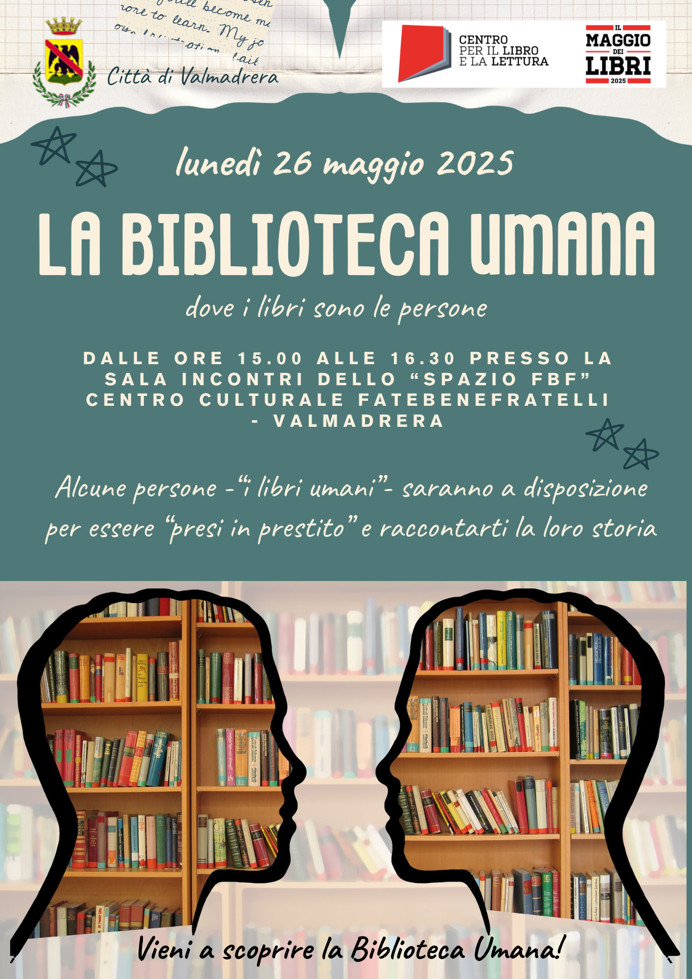 Il Comune di Valmadrera, nell’ambito della campagna nazionale Il Maggio dei Libri 2025 del Centro per il Libro e la Lettura, è lieto di invitare la cittadinanza a partecipare a un evento speciale: La Biblioteca Umana.