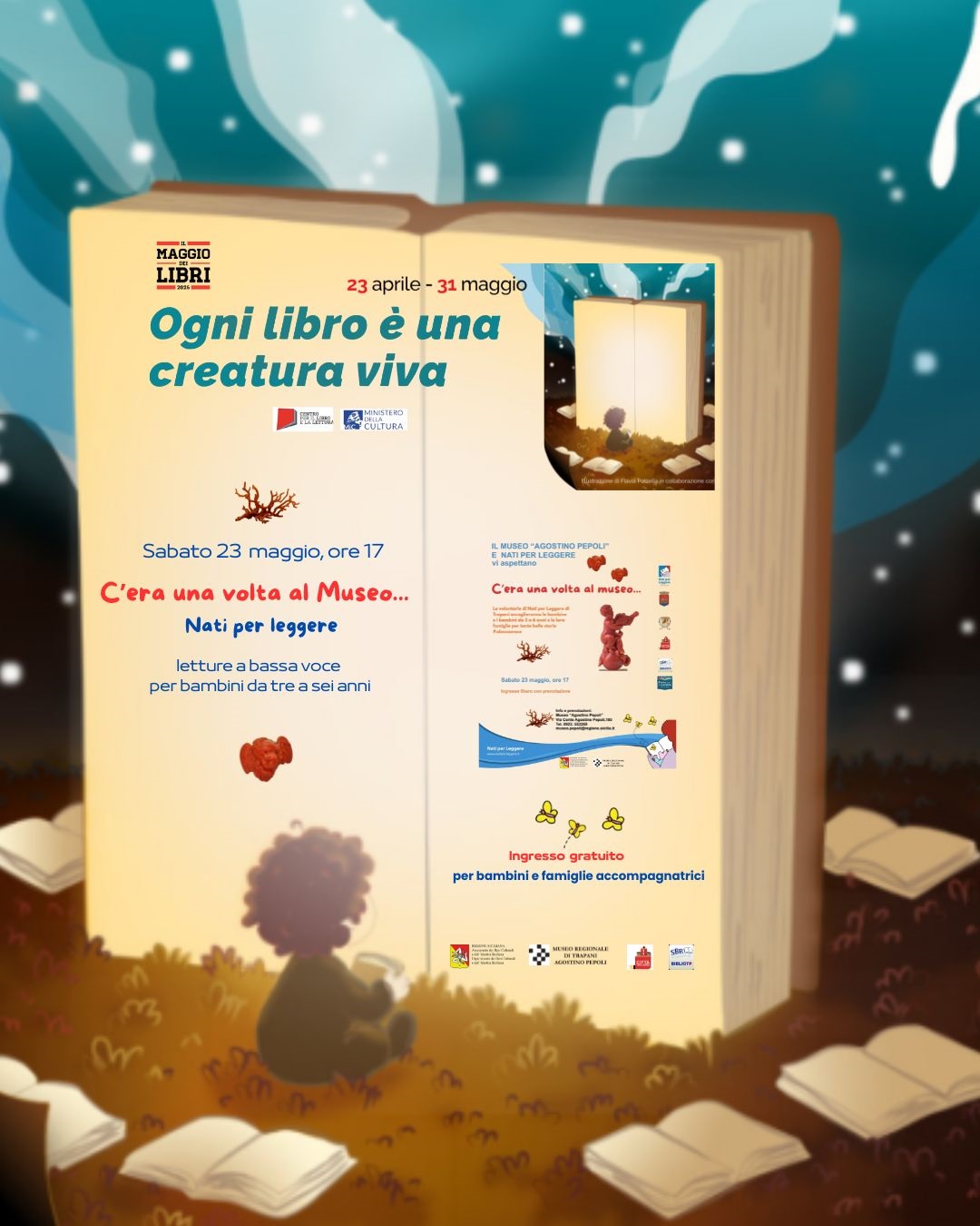 L’evento, promosso da “Nati per leggere” e dal Museo “Agostino Pepoli”, si svolge con la collaborazione della Biblioteca Fardelliana e con il patrocinio del Comune di Trapani.