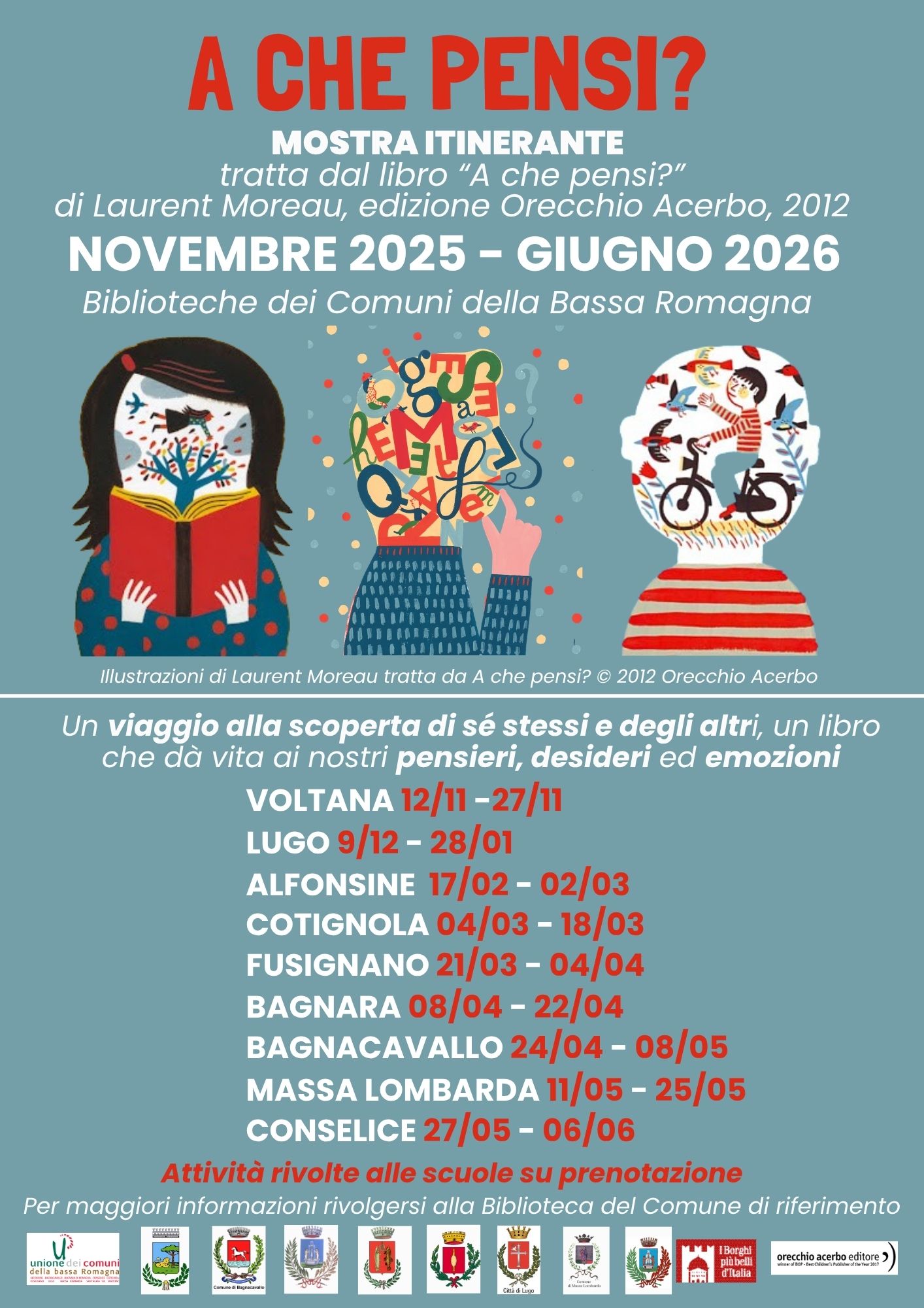"A Che pensi?" è una mostra itinerante nei comuni della Bassa Romagna, che arriva a Conselice dal 27 maggio al 6 giugno sul tema delle emozioni.