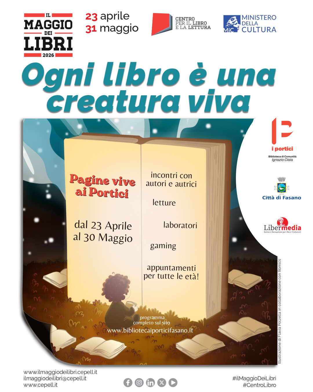 Dal 23 aprile al 31 maggio 2026, la nostra biblioteca si anima per il Maggio dei Libri, aderendo alla campagna nazionale del CLL incentrata sul tema "Ogni libro è una creatura viva". Abbiamo trasformato questo concetto in un percorso vibrante che attraversa tre filoni narrativi, rendendo la lettura un'esperienza dinamica per ogni età.