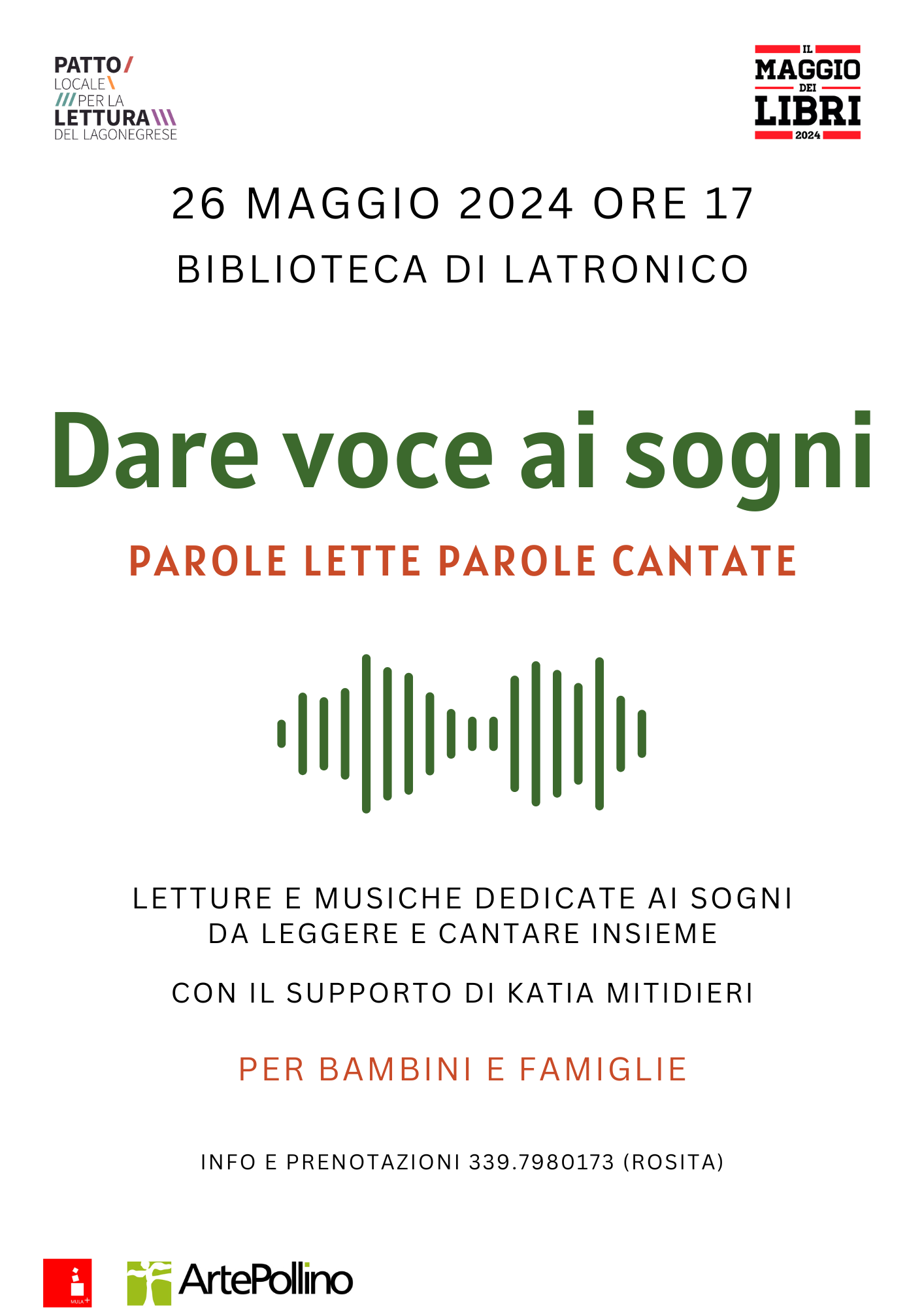 La voce umana ha un potere grande e segreto, scrivevano Rita Valentino Merletti e Bruno Tognolini nel libro Leggimi forte, pubblicato nel 2006. Prima del senso c'è il suono, prima delle parole c'è la voce. Tutto parte da lì. Quel suono genera umanità, culla, rassicura, accarezza, accompagna nel sonno. Quando la voce di un genitore incontra la parola scritta, la sua forza si moltiplica. Ma che sia cantata, letta o recitata attraverso la parola da sempre esprimiamo pensieri, desideri e sogni. Il 26 maggio, ci troveremo in biblioteca, per cantare ninnenanne, recitare filastrocche e poesie, leggere storie. Per celebrare insieme a bambini e famiglie la forza dei sogni cantati e dei sogni raccontati.