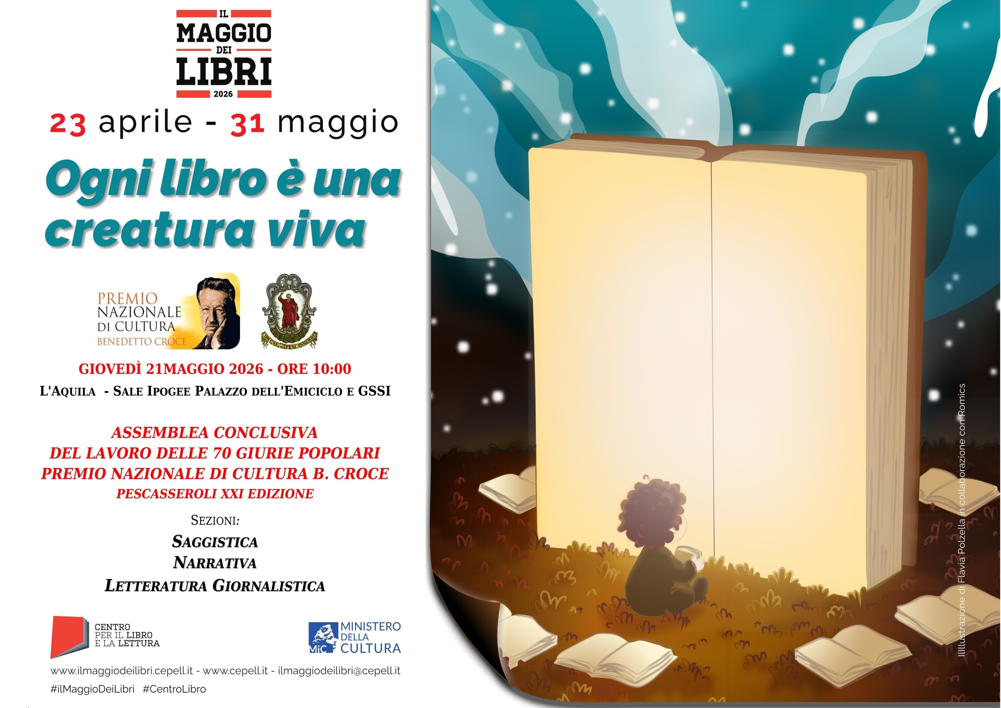 70 giurie popolari d'Abruzzo e di fuori regione — composte da scuole secondarie di secondo grado, penitenziari, Università della Libera Età, circoli culturali anziani, associazioni culturali, studenti universitari e dal Comitato Don Peppe Diana di Casal di Principe — compongono la grande comunità multigenerazionale di lettori del Premio Nazionale di Cultura B. Croce di Pescasseroli (AQ).