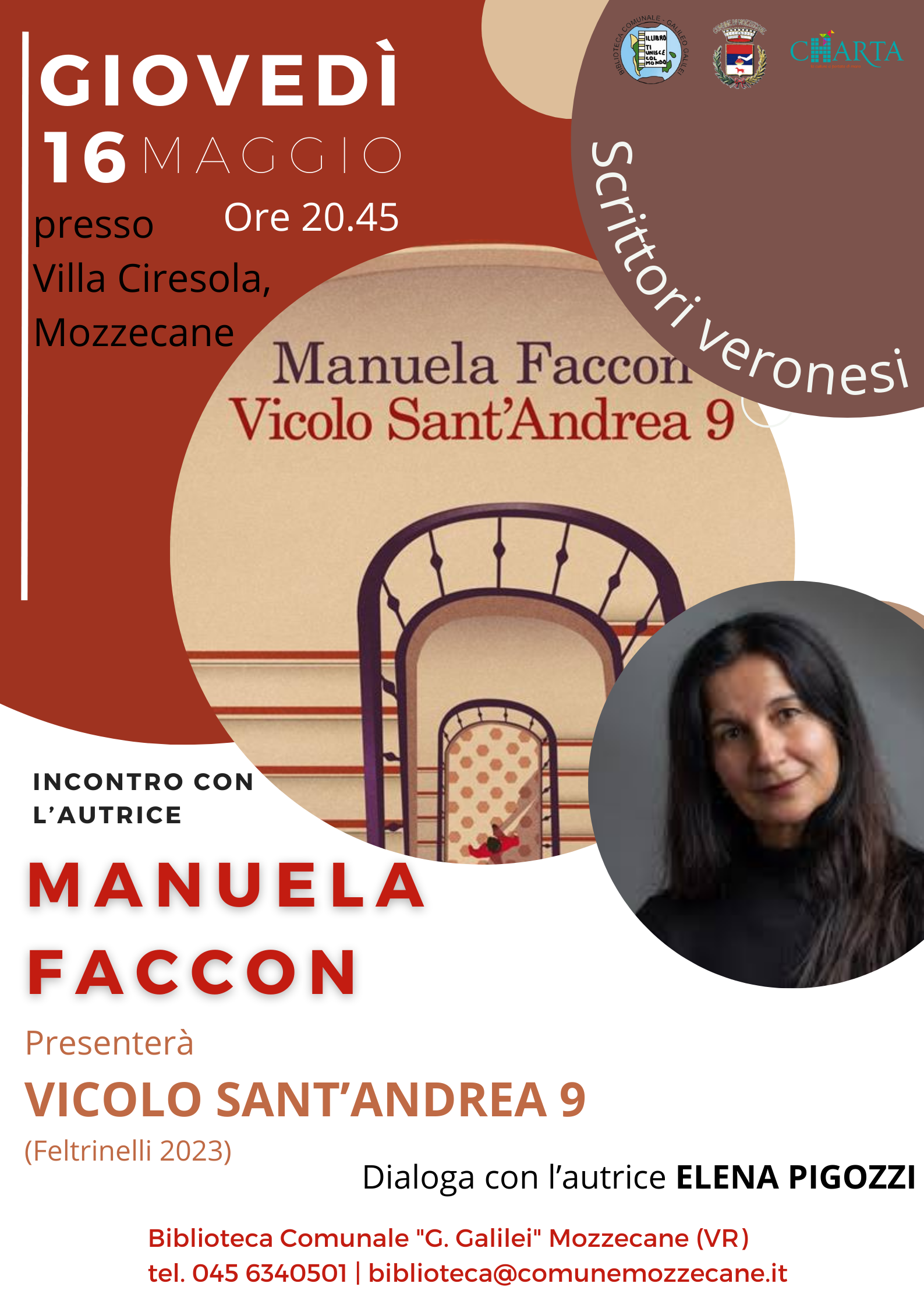 Manuela Faccon presenterà "VICOLO SANT'ANDREA 9" (Feltrinelli Editore , 2023)
