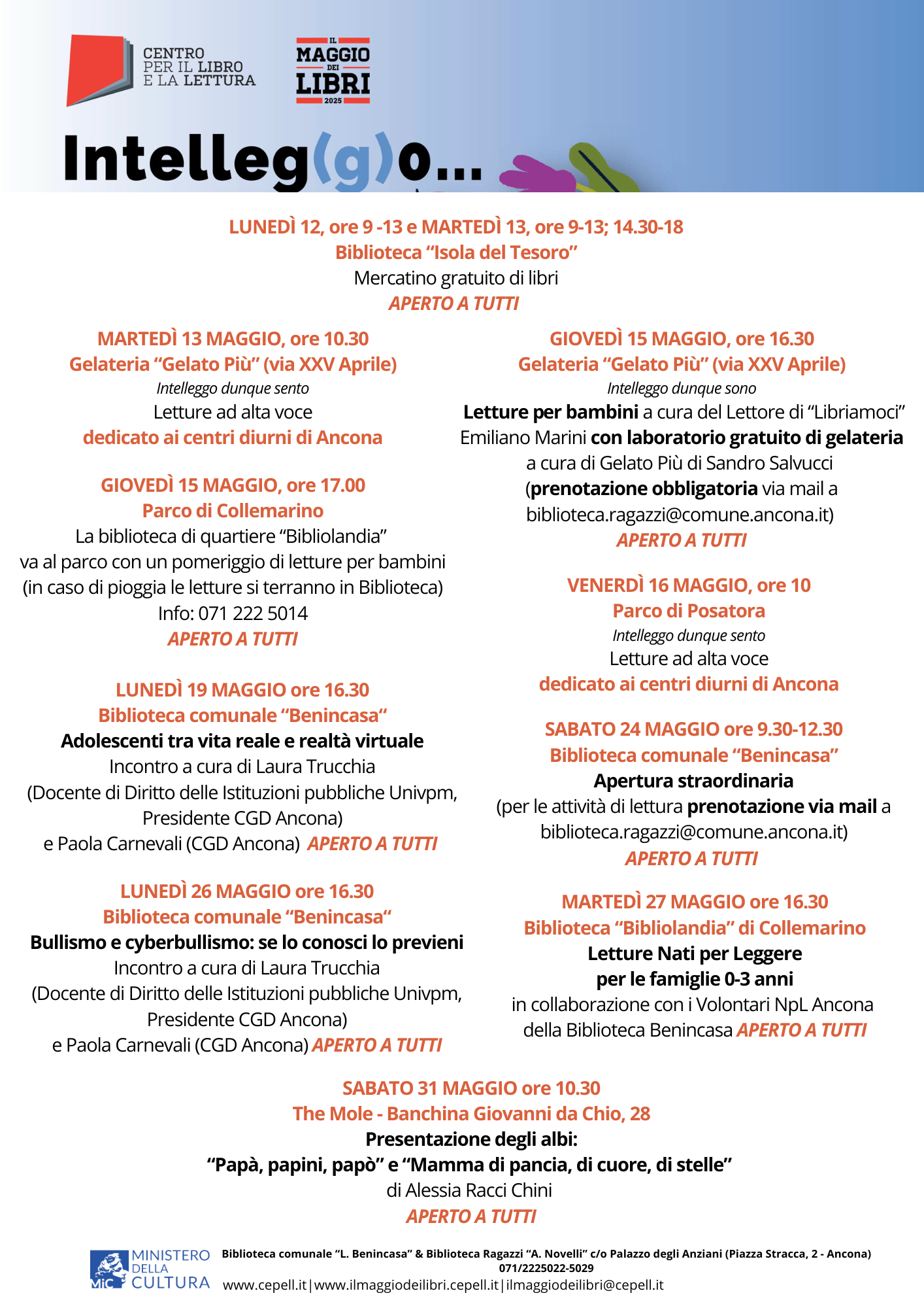 Sabato 24 maggio (9.30-12.30) é prevista l‘apertura straordinaria della biblioteca Benincasa e della biblioteca ragazzi “A. Novelli”.