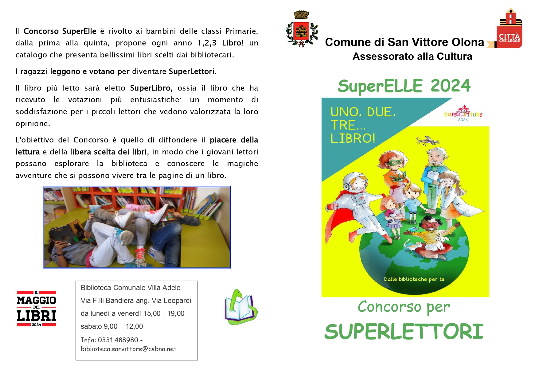 Il CONCORSO SUPERLETTORE è rivolto ai bambini della Scuola Primaria iscritti alla biblioteca, che possono scegliere tra i bellissimi libri proposti sul fascicolo “Un due Tre Libro" 2023 - li trovi tutti al link https://webopac.csbno.net/superelle/ - oppure fra tutti quelli della sezione ragazzi della biblioteca.