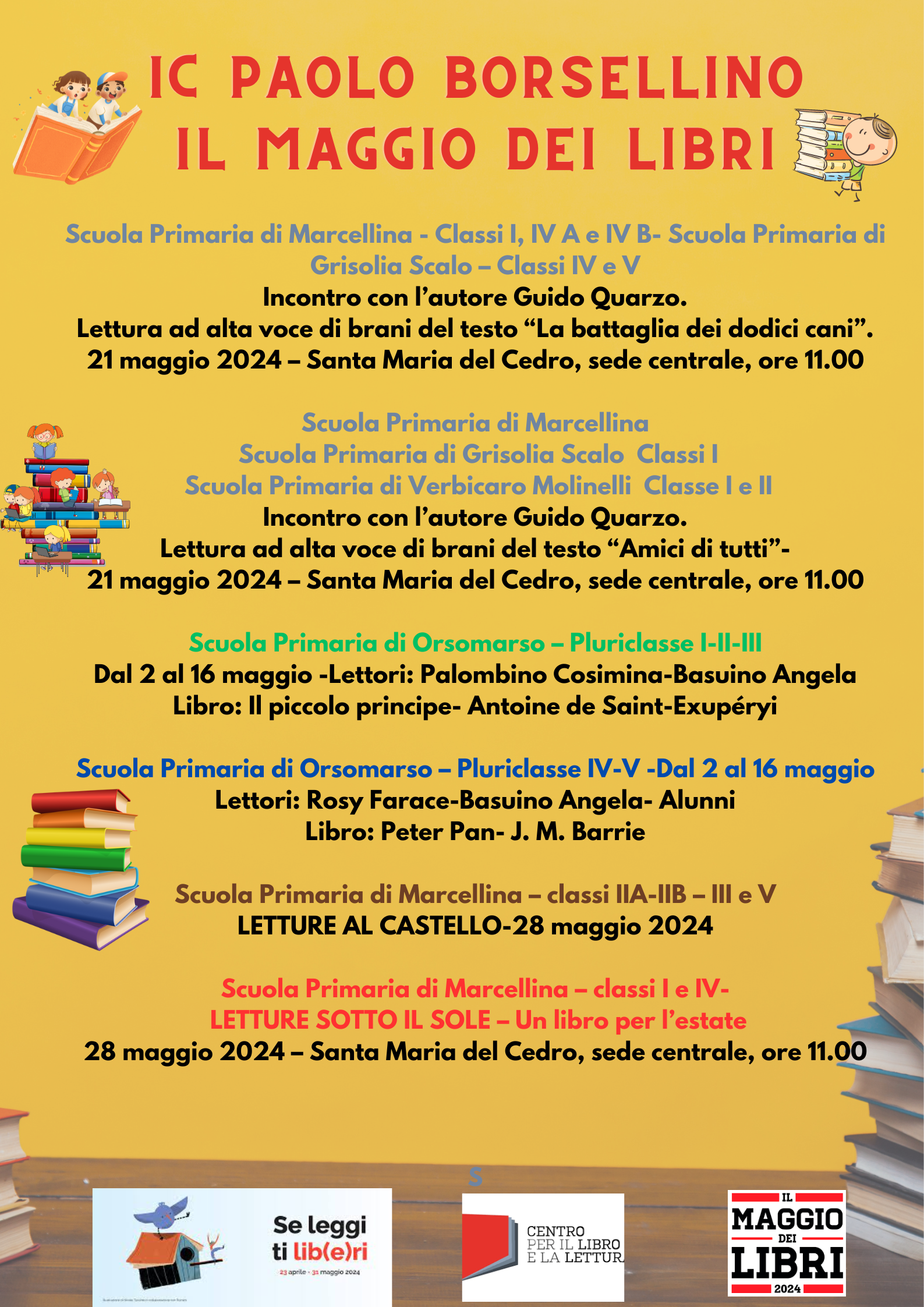 ore 10:00 - Tutti sul pedibus guidato dall'arch. Egle Calamia. Con l'insegnante Giusi Gandolfo e gli alunni della sezione Mandorlo in fiore della Scuola comunale dell'infanzia Galileo Galilei ci ritroveremo in via Galileo Galilei 36 al capolinea dell'estemporaneo pedibus del Maggio dei libri 2024.