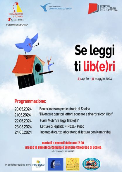- 21 maggio, laboratorio esperienziale con i genitori nella biblioteca Comunale G. Caloprese in Scalea, Diventare genitori lettori: educare e divertirsi con i libri;