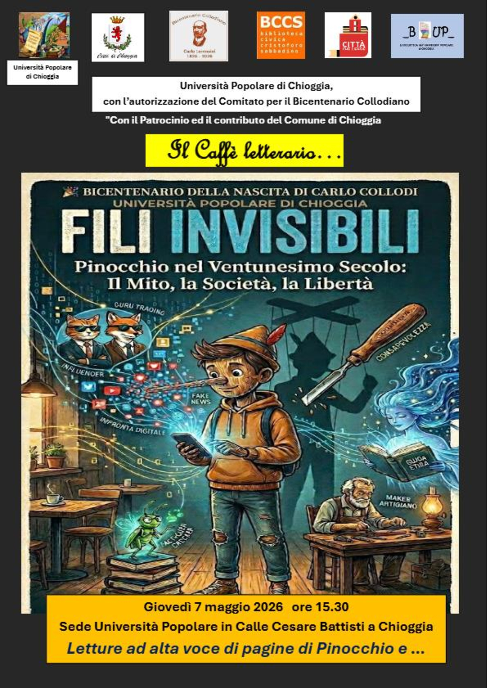 Chioggia: Che fine avrebbe fatto oggi il burattino più famoso del mondo? Avrebbe ancora il naso di legno o la sua traccia sarebbe digitale? In un'epoca dominata da algoritmi, influencer e "campi dei miracoli" virtuali, il capolavoro di Carlo Collodi si rivela una profezia spiazzante sulla nostra società.