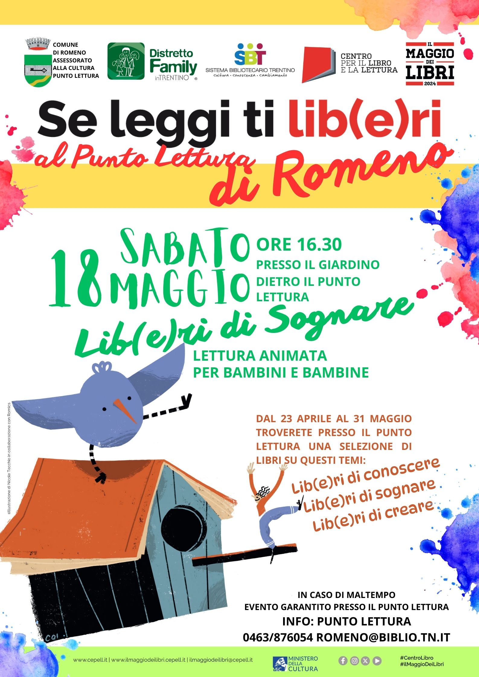La lettura si svolgerà nel giardino sottostante il punto lettura di Romeno (TN) alle 16.30.