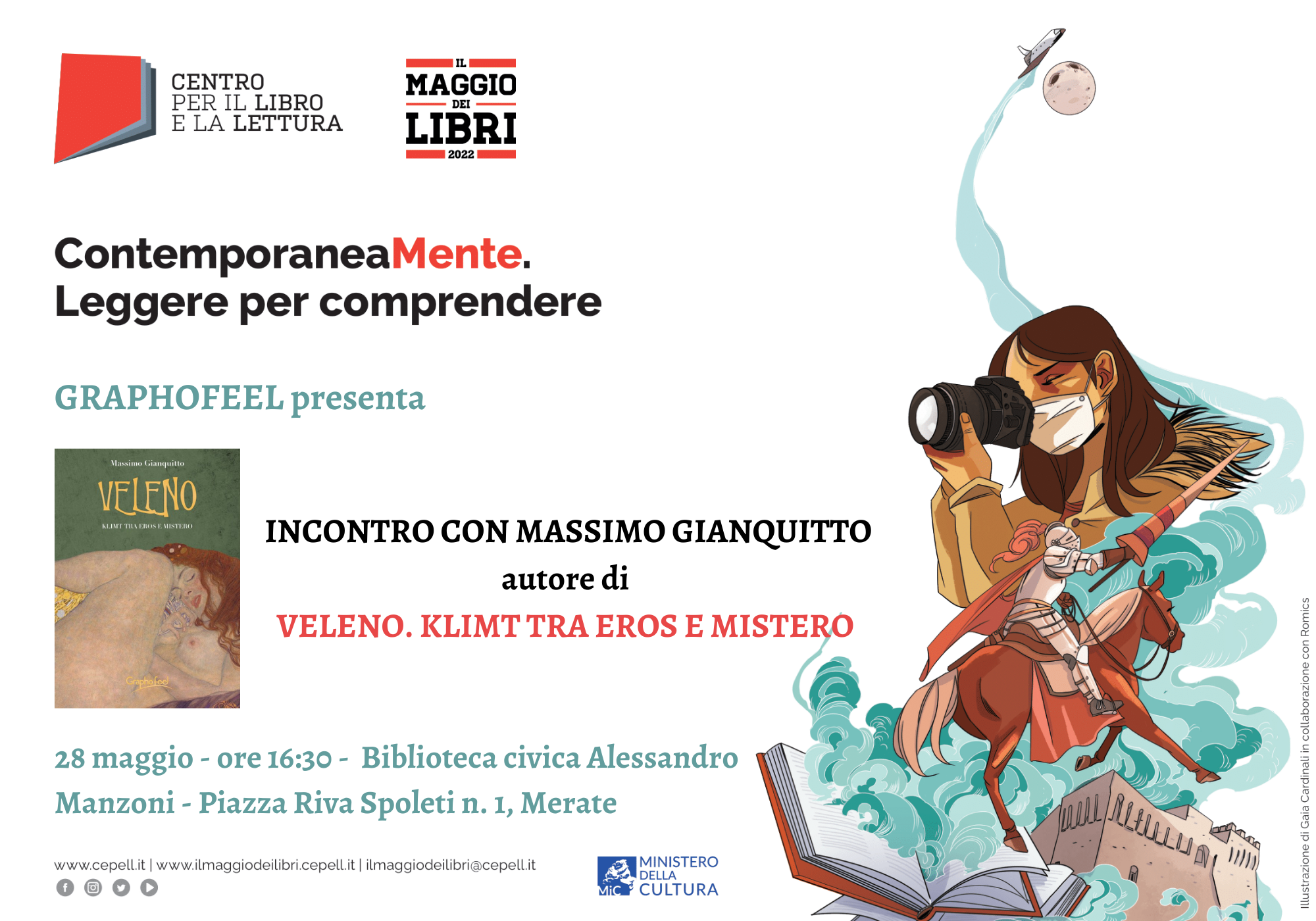 Sabato 28 maggio ore 16:30 Massimo Gianquitto, autore di ???Veleno. Klimt tra eros e mistero???, terr?? una presentazione del suo libro edito Graphofeel Edizioni presso la Biblioteca civica Alessandro Manzoni di Merate a Piazza Riva Spoleti, n 1.