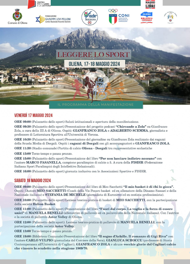 L'evento è organizzato dal Comune di Oliena, in collaborazione con la Fondazione Giuseppe Levi Pelloni, con la FISDIR (Federazione Italiana Sport paralimpici degli Intellettivo Relazionali), con l’Istituto Comprensivo di Oliena e la Biblioteca Comunale Mario Ciusa Romagna.