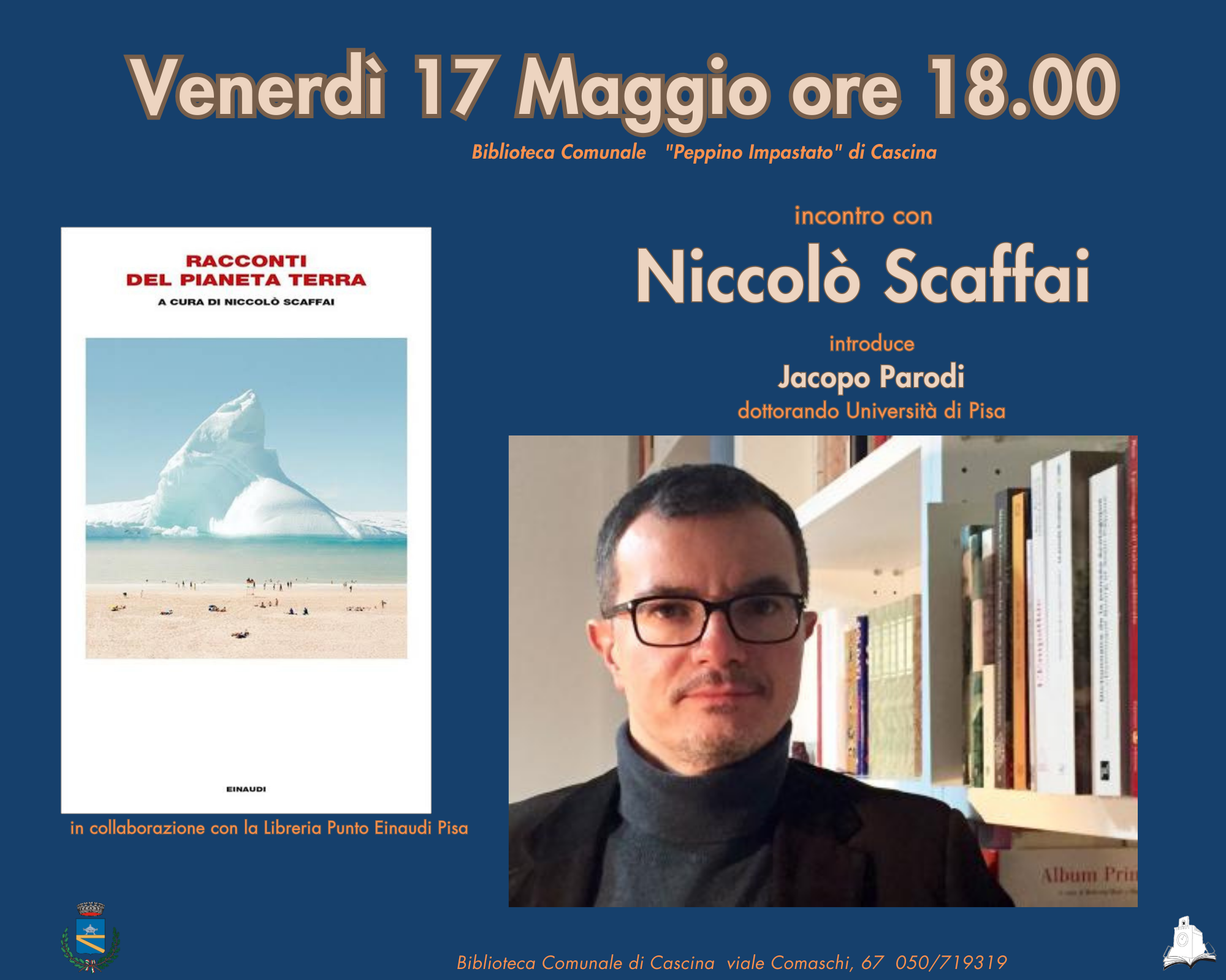 Incontro con il prof. Niccolò Scaffai per la presentazione del suo libro "Racconti della Terra" in collaborazione con la libreria Punto Einaudi Pisa, modera l'incontro Jacopo Parodi, dottorando Università di Pisa