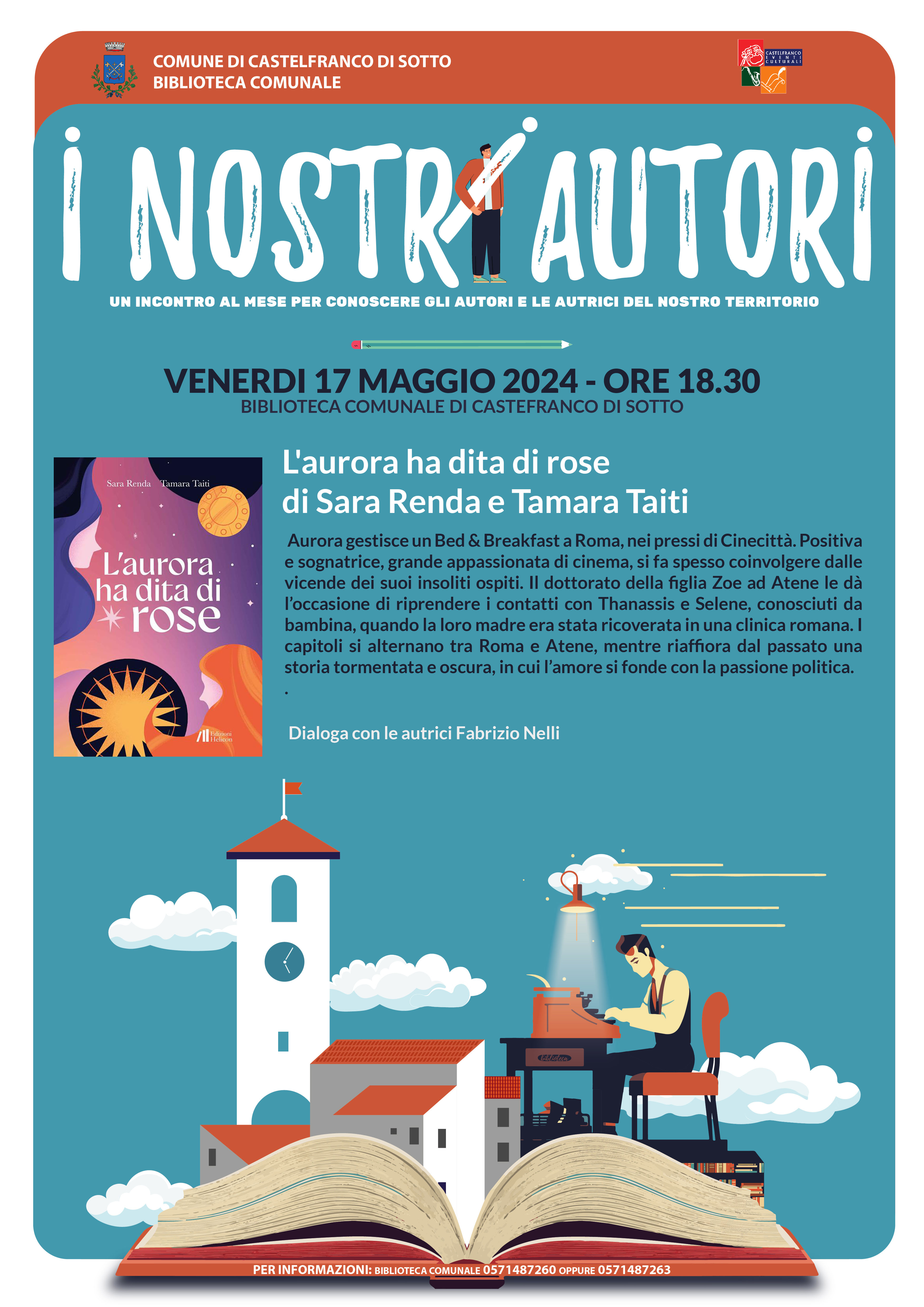 I nostri autori è un'iniziativa con la quale vengono promossi le autrici e gli autori del territorio. Il 17 Maggio verrà presentato, alla presenza delle autrici Sara Renda e Tamara Taiti il libro "L'aurora ha dita di rosa".