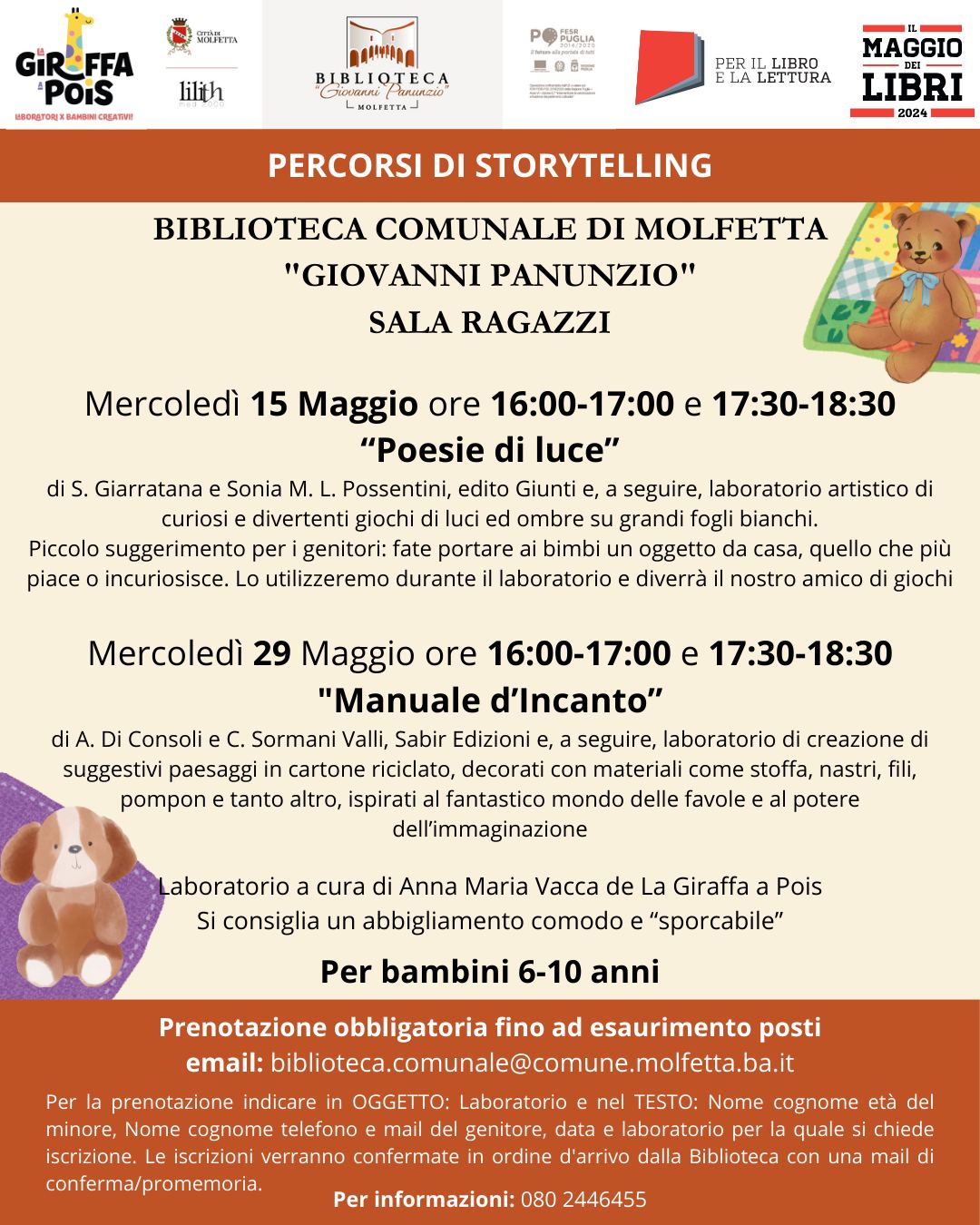 I laboratori di STORYTELLING (destinati ai bambini di 6-10 ANNI), questo mese si ispirano al filone tematico “Lib(e)ri di sognare” con due incontri: