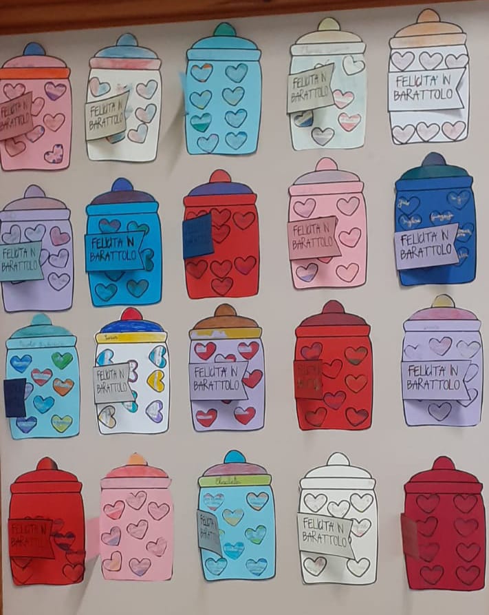 tutto si può vendere e comprare. L’attività si è conclusa con un laboratorio: la realizzazione con il cartoncino dei “Barattoli della felicità” sui quali ciascun bambino ha scritto ciò che lo rende felice a scuola.