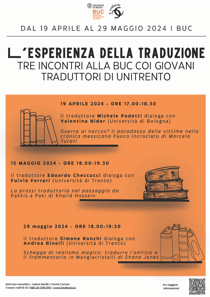 Tre incontri dedicati alla traduzione quelli organizzati dai docenti del Dipartimento di Trento in collaborazione con la BUC e Forme Libere.