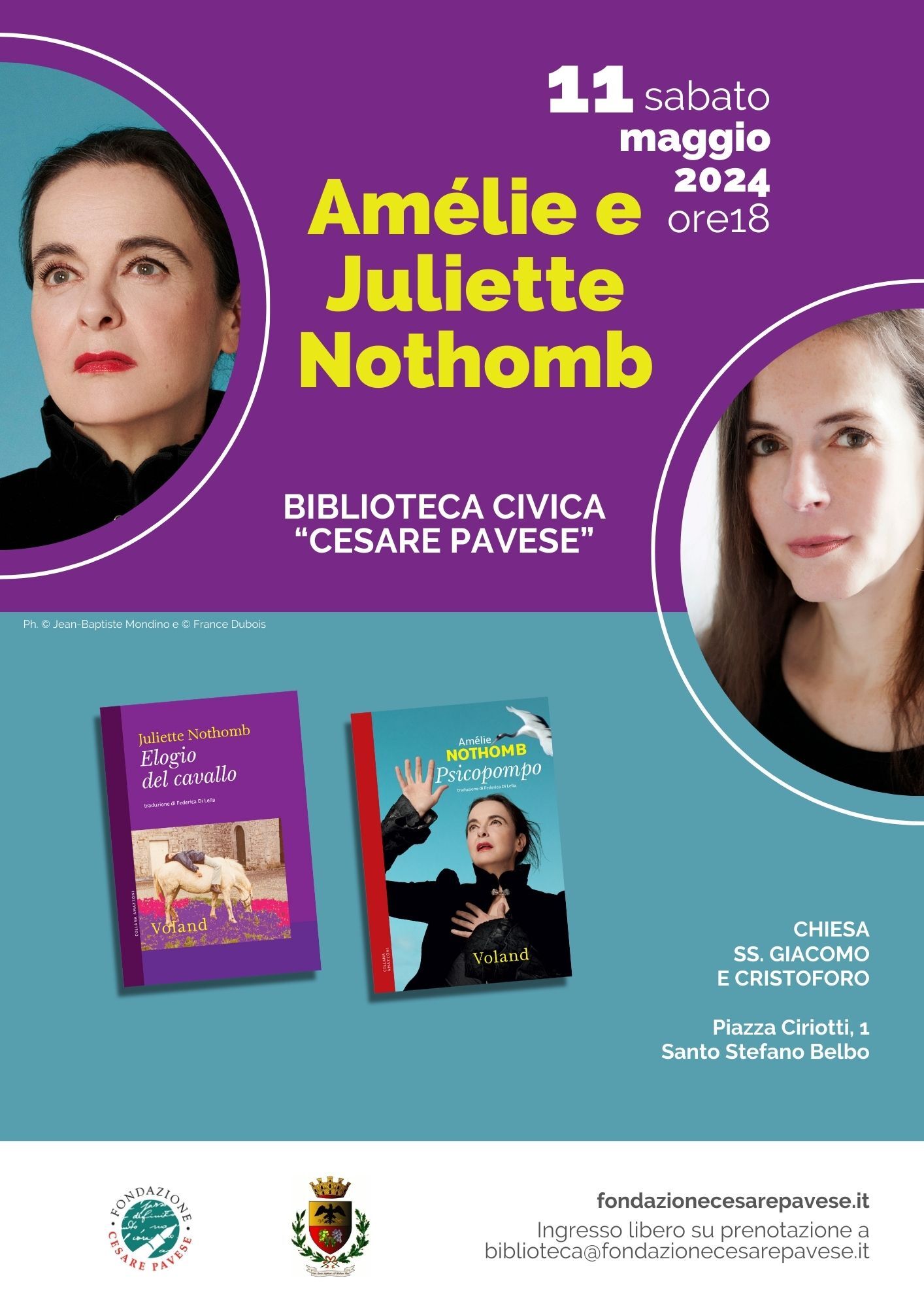 Le autrici Amélie e Juliuette Nothomb incontreranno il loro pubblico per la presentazione dei rispettivi libri recentemente usciti per i tipi di Volan: Psicopomo ed Elogio del cavallo.