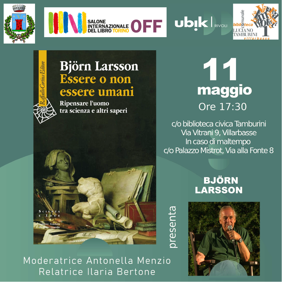 Lo scrittore Bjorn Larsson presenta il saggio "Essere o non essere umani" edito Cortina. Modera l'incontro la libraia Antonella Menzio (libreria Ubik Rivoli). Relatrice: la professoressa Ilaria Bertone.