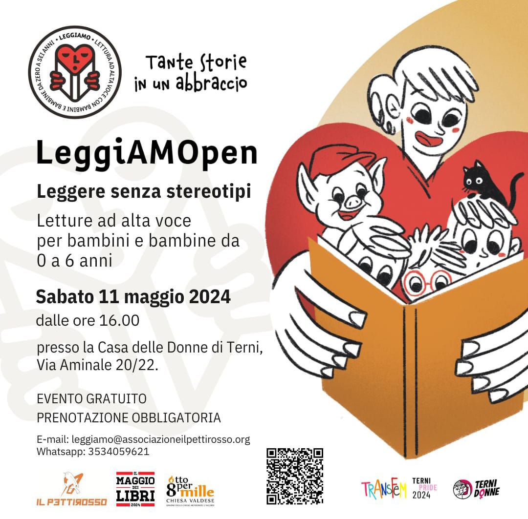 Torna LeggiAMOpen, cioè l'edizione primaverile e prevalentemente all'aria aperta del progetto LeggiAMO dell'Associazione Il Pettirosso, attivo da settembre 2022 sul territorio ternano. Per consolidare il percorso sulla pratica della lettura ad alta voce nella fascia 0-6, che ha presupposto alla formazione di circa 400 insegnanti e coinvolto anche i genitori, anche in questa primavera abbiamo proposto letture gratuite in spazi aperti, con lettori e lettrici esperte, alla presenza dei genitori: 11 maggio alla Casa delle donne con "leggere senza stereotipi", 23 maggio al parco "Emanuela Loi" di Terni, 24 maggio alla Libreria So’Stare di Configni di Acquasparta.