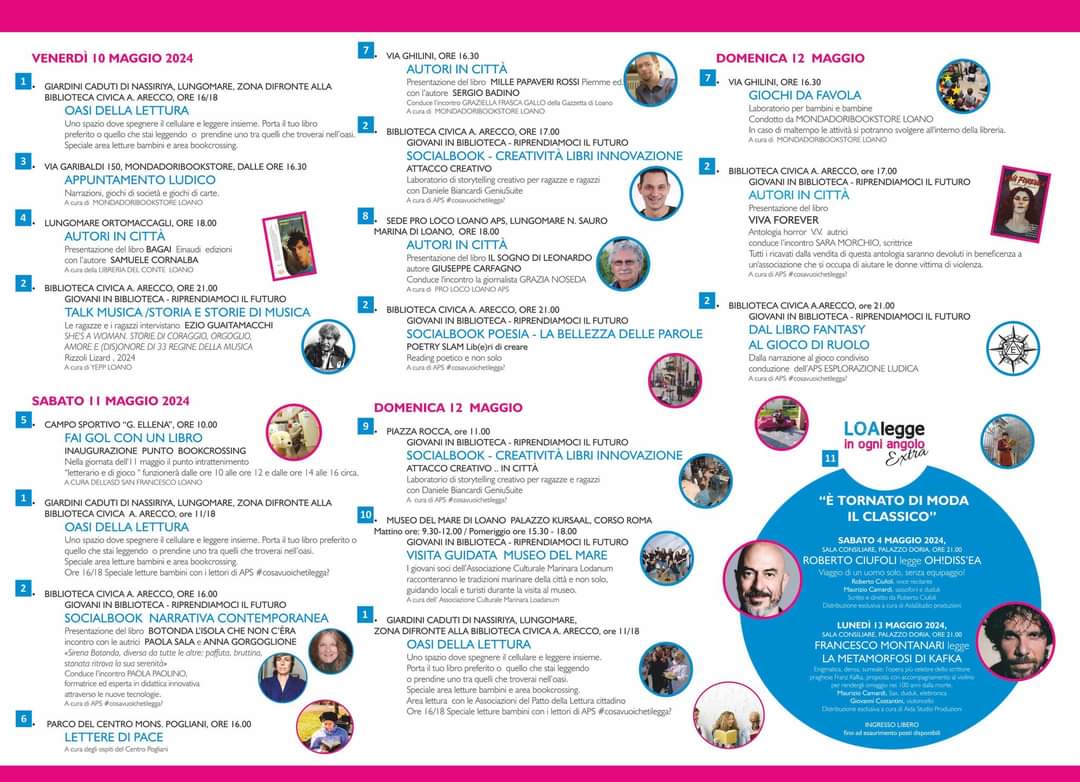 - la follia, declinando il concetto nei suoi aspetti sanitari (ricorrendo anche il centenario dalla nascita di Franco Basaglia), sociali e letterari, tramite l'installazione di panel che riportino citazioni letterarie e la proiezione di un docufilm sul tema (12 Maggio).