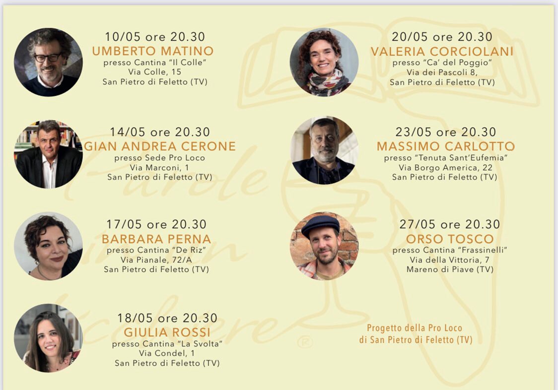 Rassegna letteraria itinerante che si svolge nelle Cantine vinicole del territorio di San Pietro di Feletto (TV) nella cornice delle Colline di Conegliano e Valdobbiadene, territorio UNESCO.