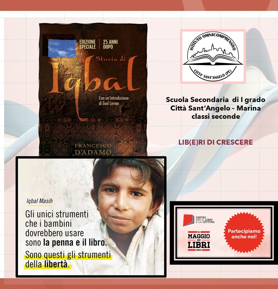 L'iniziativa proposta è rivolta agli alunni delle classi 2 D, 2 E, 2 F e 2G della SS1 dell'Istituto Omnicomprensivo di Città Sant'Angelo ed è incentrata sulla lettura di alcuni capitoli tratti dal romanzo "Storia di Iqbal" di Francesco D'Adamo. Il libro affronta temi importanti come il lavoro e lo sfruttamento minorile, il coraggio e la resistenza di fronte alle ingiustizie, l'amicizia e la solidarietà per sopravvivere alle difficoltà quotidiane, l'ingiustizia sociale ed infine la speranza in un futuro migliore. Attraverso la lettura e l'ascolto del testo i ragazzi avranno la possibilità di esplorare e affrontare tematiche riconducibili non solo ai contenuti disciplinari appresi durante l'anno scolastico (come le conseguenze sociali della prima rivoluzione industriale) ma anche quelle trattate durante le ore di Educazione Civica (come i diritti umani). Inoltre saranno previsti momenti di dibattito e condivisione a seguito di ogni sessione di lettura.