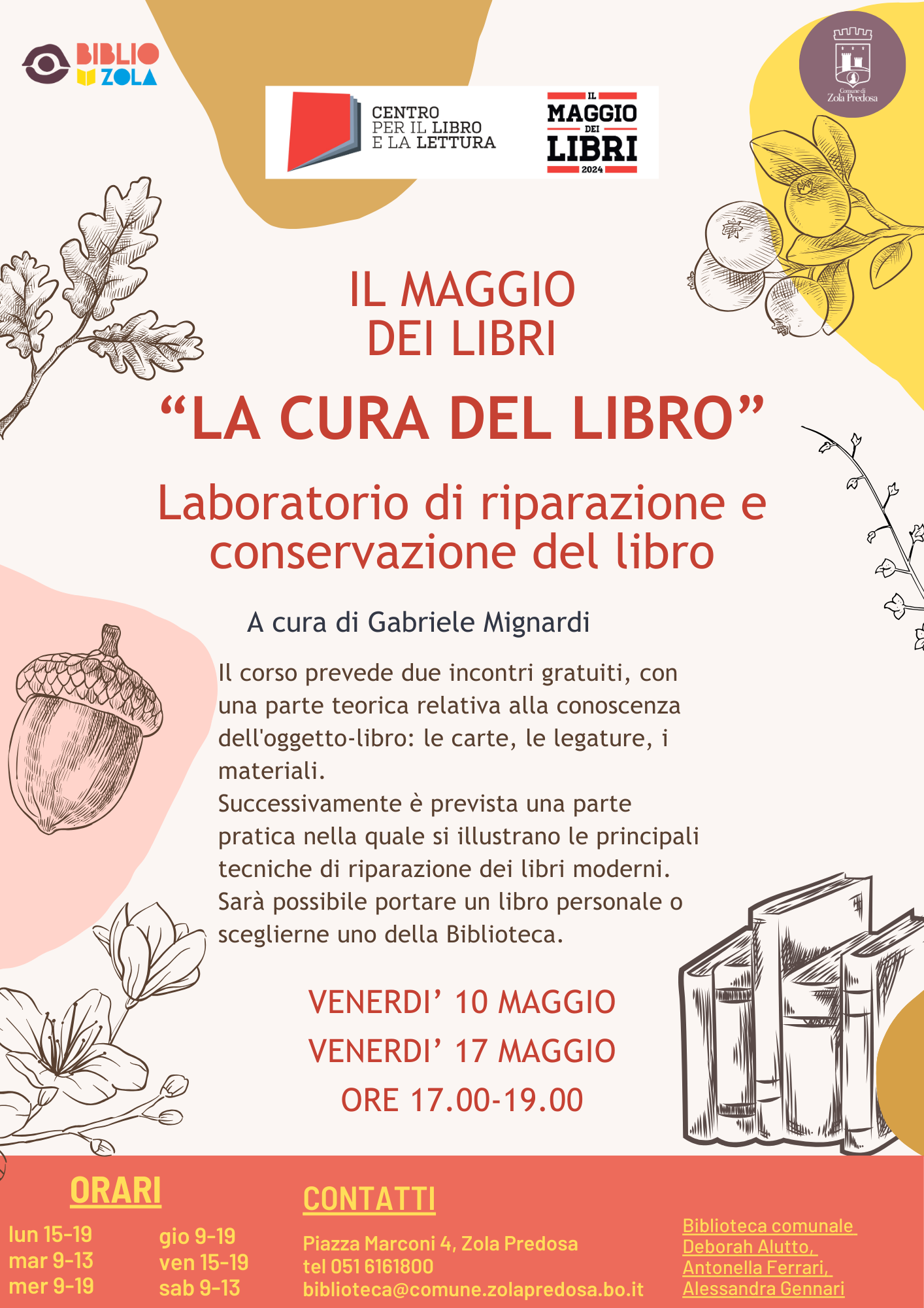 Per l'attività di riparazione sarà possibile portare un proprio libro personale bisognoso di riparazione o sceglierne uno tra quelli della Biblioteca che attendono una cura.
