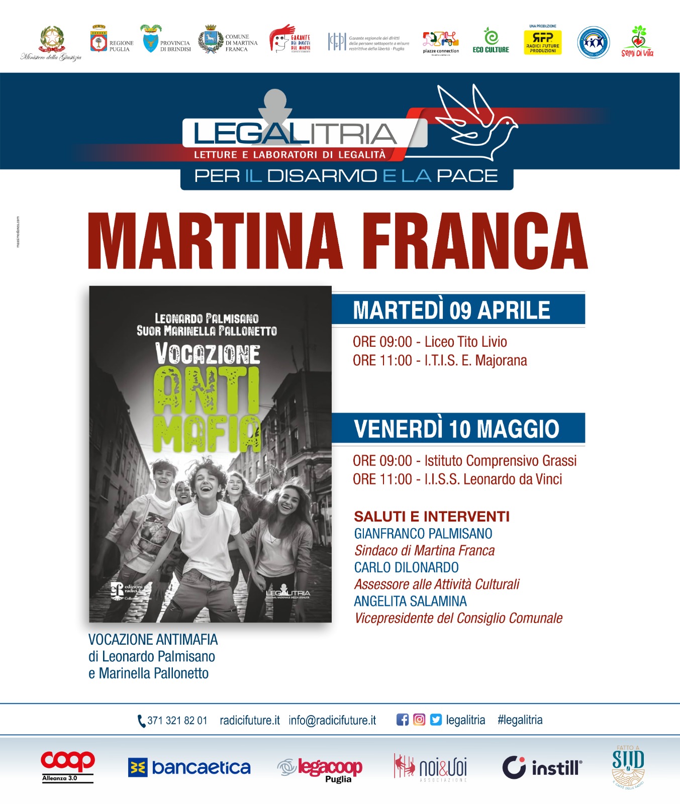 L'incontro con l'autore, Leonardo Palmisano, rientra nel progetto “LegalItria” e prevede il coinvolgimento delle classi terze della Scuola Secondaria di Primo Grado dell'Istituto Comprensivo "Giuseppe Grassi" di Martina Franca.