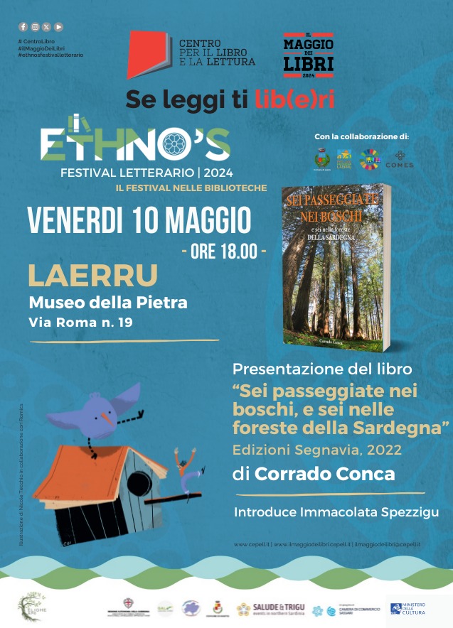 In collaborazione con Pro Loco, amministrazione comunale e Ethno's Festival Letterario presentazione del libro di Corrado Conca "SEI PASSEGGIATE NEI BOSCHI, E SEI NELLE FORESTE DELLA SARDEGNA", Edizioni Segnavia.