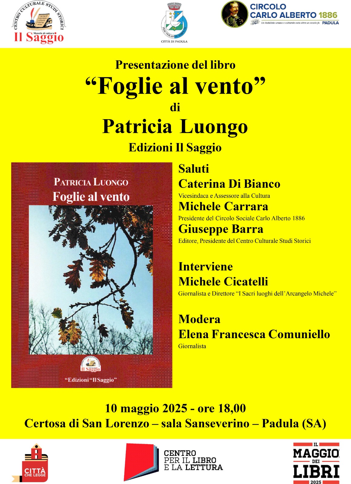 Alla presentazione del libro, organizzata dal Comune di Padula (Città che Legge) in collaborazione con il Circolo Sociale Carlo Alberto 1886 (partner del Patto per la Lettura e promotore di numerose pubblicazioni con eventi di divulgazione della lettura), interverrà l'editore G. Barra e il giornalista M. Cicatelli; ne discuterà con l'autrice la giornalista E.F.Comuniello.