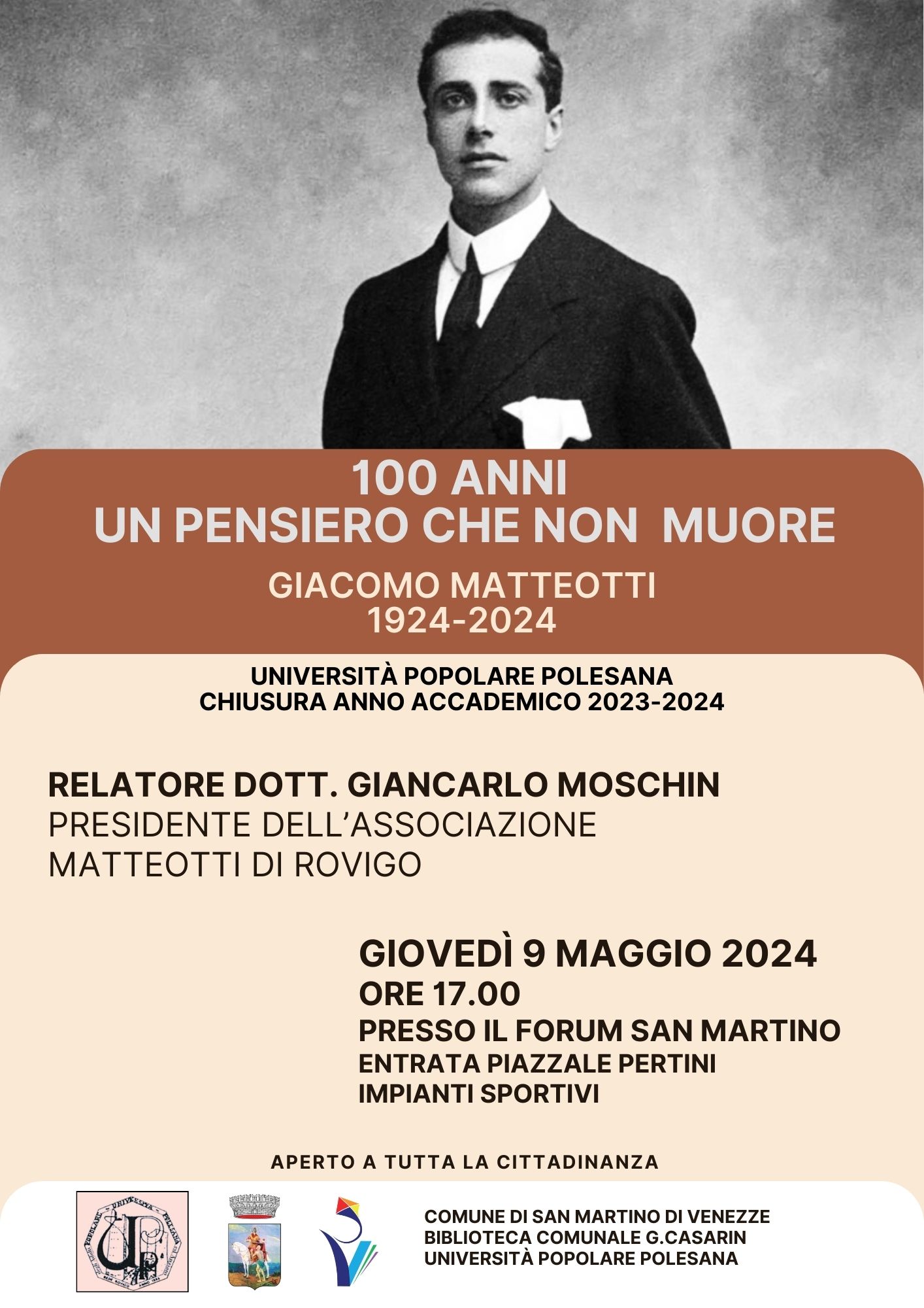 100 anni un pensiero che non muore. Giacomo Matteotti 1924-2024 UNIQUE CODE: 202403876