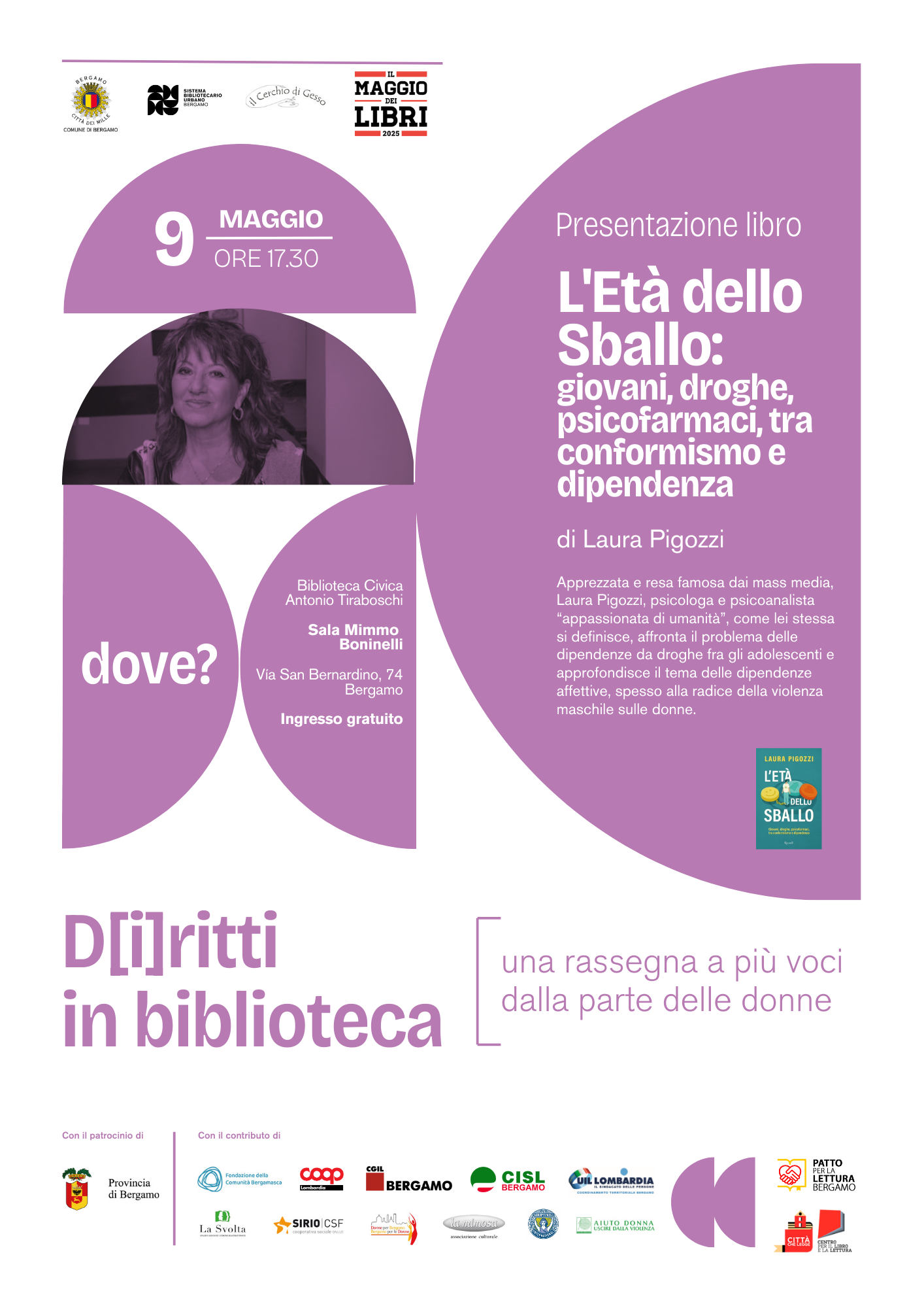Un’ospite ormai conosciuta dai mass media, per la cui presenza abbiamo dovuto particolarmente insistere: Laura Pigozzi, psicologa-psicoanalista “appassionata di umanità”, come lei stessa si definisce. Attraverso l’ultima sua pubblicazione “L'Età dello Sballo: giovani, droghe, psicofarmaci, tra conformismo e dipendenza” verrà affrontato il tema delle dipendenze affettive, spesso alla radice della violenza maschile sulle donne.