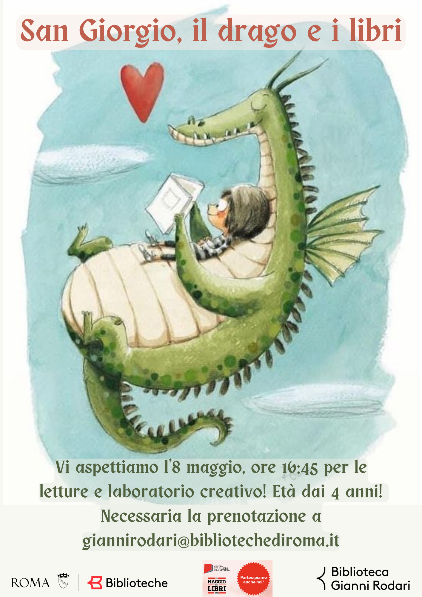 In occasione del Maggio dei Libri 2024, la biblioteca propone delle letture e un laboratorio creativo ispirato alla leggenda di Sant Jordi e il drago in Catalogna.