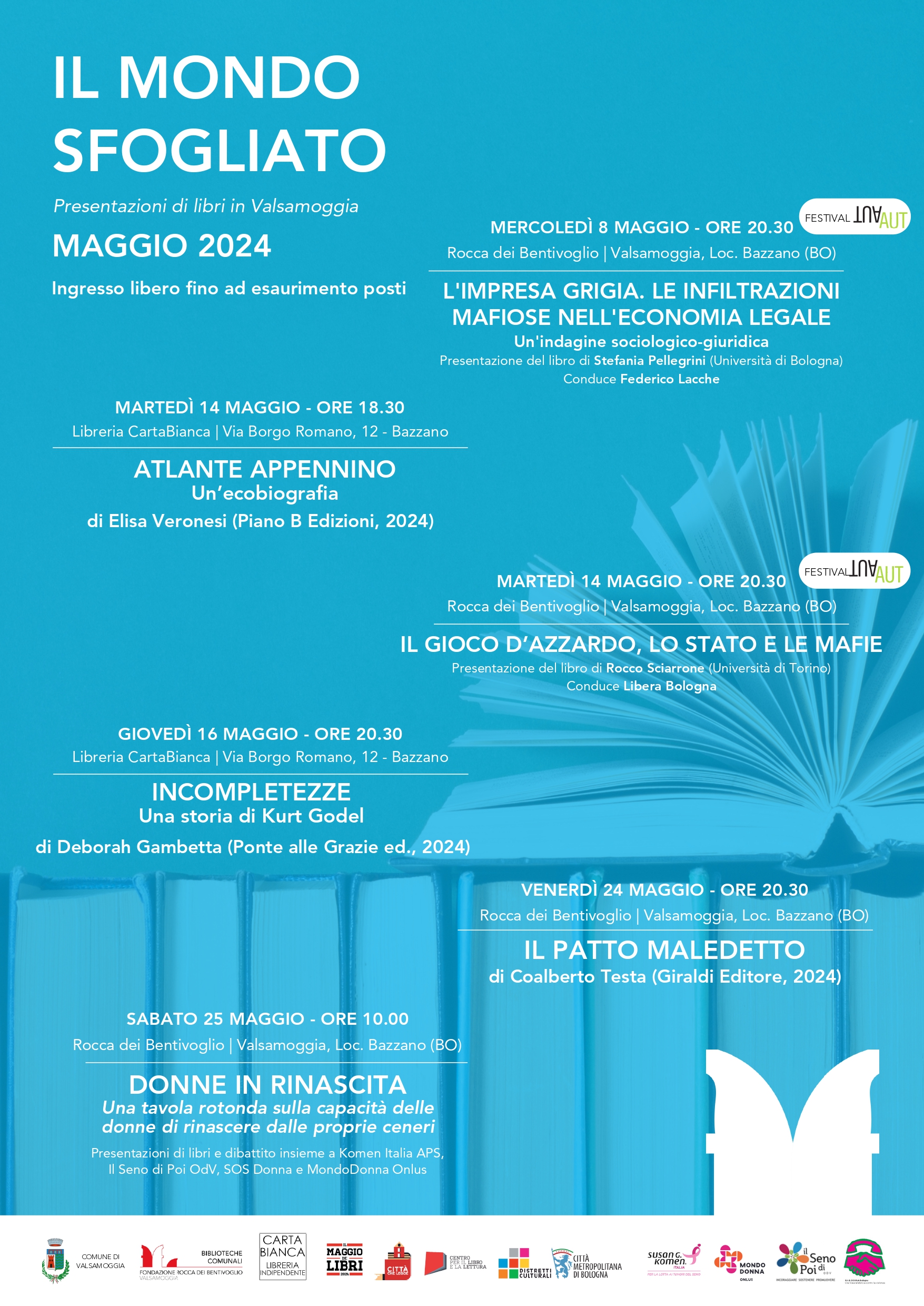Le biblioteche e le librerie di Valsamoggia organizzano una serie di presentazioni di libri su tutto il territorio per conoscere nuovi autori, incontrarli e confrontarsi con le loro storie.
