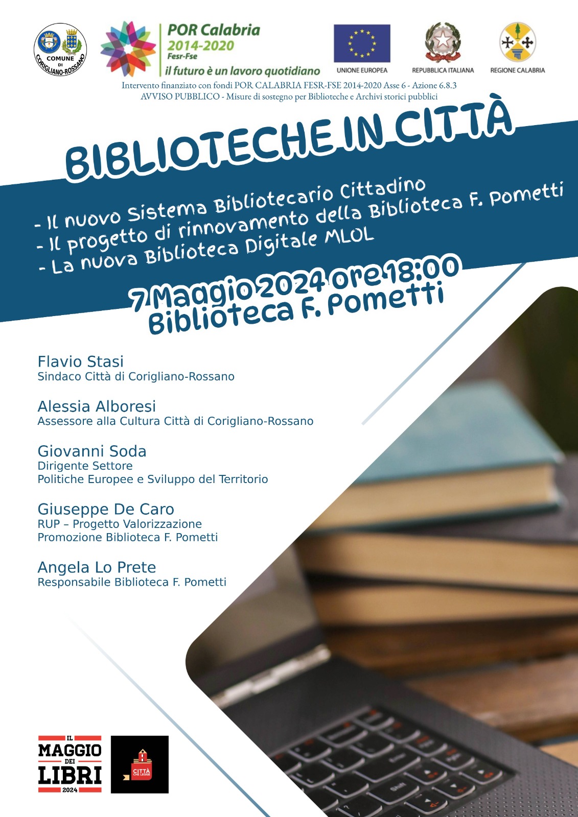 Nei locali della "Biblioteca Francesco Pometti" si è tenuto un incontro informativo in cui sono stati presentati il nuovo Sistema Bibliotecario della Città di Corigliano-Rossano (Biblioteca Francesco Pometti - Biblioteca Giorgio Leone - Biblioteca per bambini e ragazzi Carmine De Luca), il Progetto di rinnovamento della Biblioteca Francesco Pometti e la nuova Biblioteca Digitale MLOL.